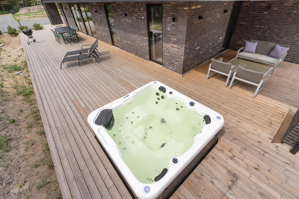 Ganz besonders freuen könnt ihr euch auf den großen Außenwhirlpool. Dieser befindet sich auf der Terrasse und ist ganzjährig, unabhängig von der Jahreszeit, nutzbar. Selbst wenn das Wetter vielleicht einmal etwas trübe und kühler sein sollte, ist es wunderbar, im warmen und sprudelndem Wasser zu sitzen und zu entspannen.