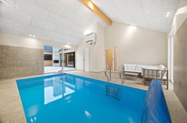 Der 17 qm große Pool lädt danach zum Entspannen ein. Auch eure Kinder haben hier Platz, um sich auszutoben. Zudem bietet euer modernes Ferienhaus 3 hochwertig eingerichtete Bäder mit Fußbodenheizung, damit ihr morgens nicht Schlange stehen müsst.
