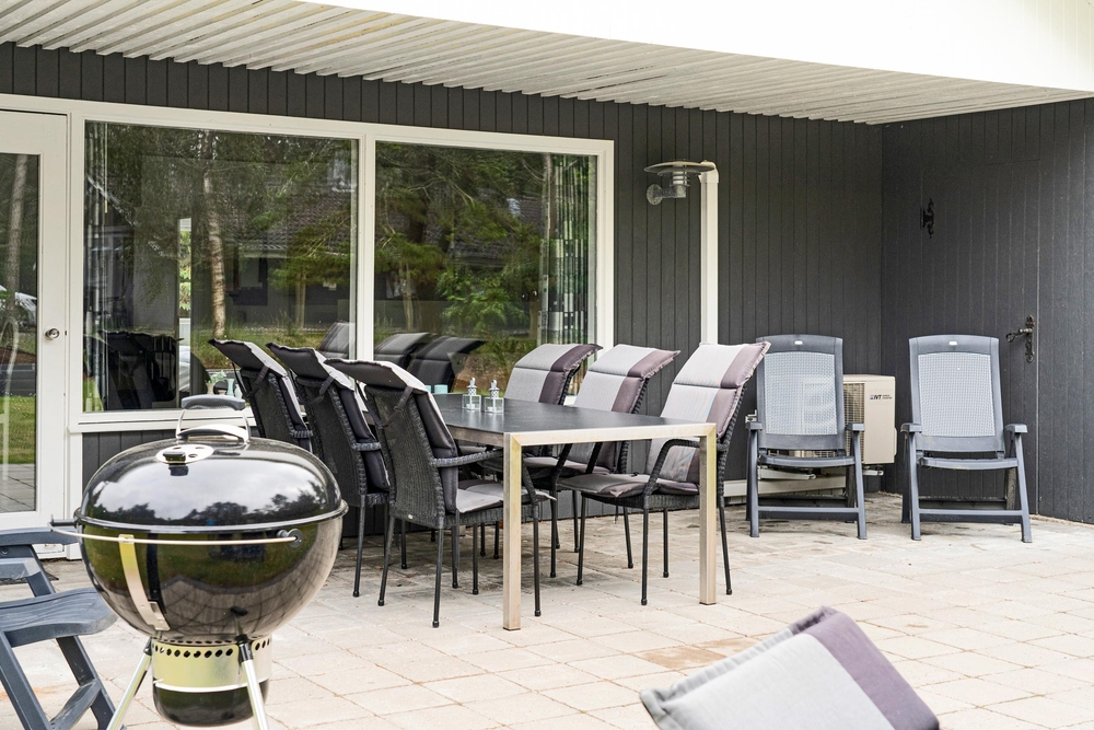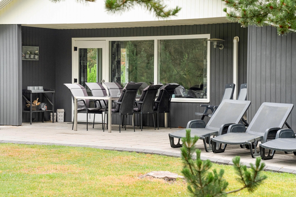 Die große Terrasse läuft fast um das ganze Haus, sodass ihr immer die Möglichkeit habt, mit der Sonne zu wandern um ein sonniges Plätzchen zu finden. Auf den Gartenmöbeln könnt ihr euch gut entspannen und den Kindern beim Spielen auf der großen Rasenfläche zuschauen. Diese eignet sich für verschiedene Spiele, die ihr mit den Kindern spielen könnt, wie beispielsweise Fußball oder einfach nur im Gras liegen und in die Wolken schauen.