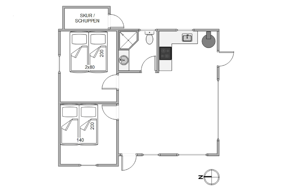 Obwohl das Haus auf zwei Personen ausgelegt ist, bieten die Räume eine großzügige Rückzugsmöglichkeit. Zwei gemütliche Schlafzimmer mit Doppelbetten garantieren erholsame Nächte. Das Badezimmer erwartet euch mit wohliger Fußbodenheizung, die besonders an kühleren Tagen für ein angenehmes Gefühl sorgt.