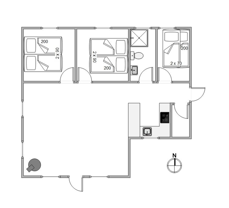 Dieses einfache, aber gemütliche Ferienhaus bietet Platz für bis zu 6 Personen. Es gibt drei Schlafzimmer, von denen 2 mit Doppelbetten und 1 mit einem Etagenbett ausgestattet sind.