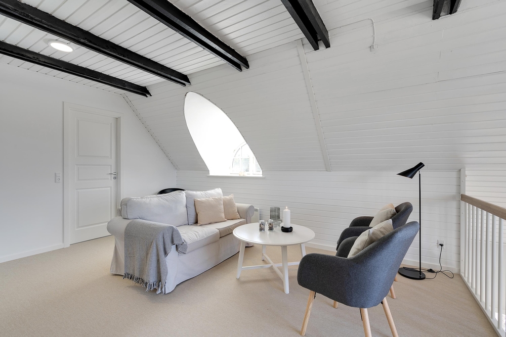 Auf zwei Etagen befinden sich nicht nur 3 Schlafzimmer, ein Badezimmer, 1 Gäste-WC sowie eine moderne Küche, sondern es gibt sogar zwei Wohnzimmer. Eines sowie 2 Schlafzimmer befinden sich in der oberen Etage, welche ihr über eine offene Wendeltreppe aus dem unteren Wohnzimmer mit Kamin erreicht.