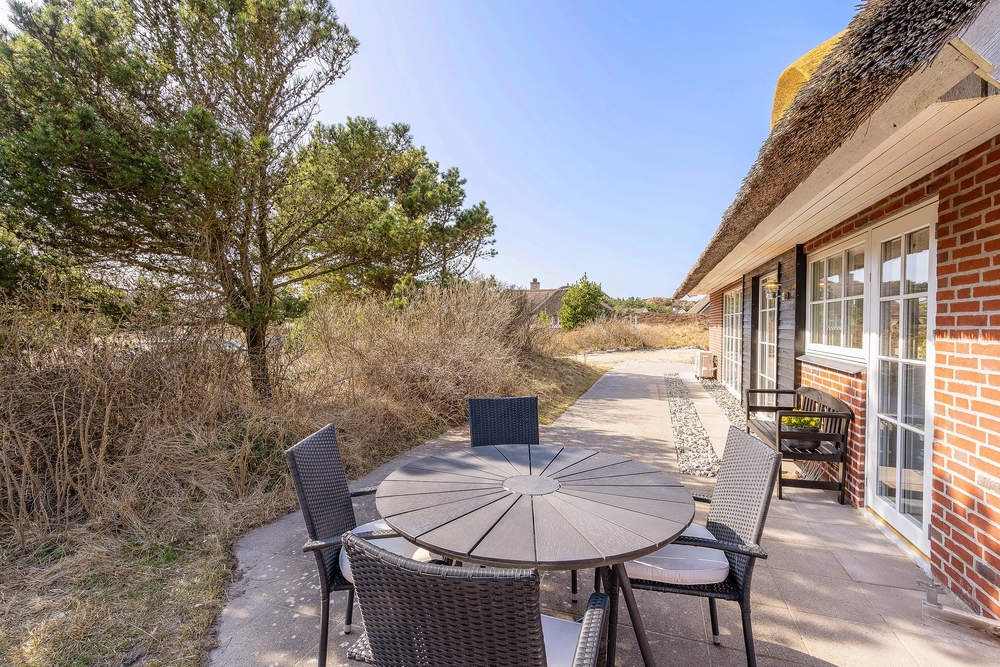 Das rotgeklinkerte Haus mit seinem traditionellen Reetdach passt einfach perfekt in die schöne Landschaft und zu Henne Strand. Es strahlt nicht nur Urigkeit, sondern auch eine damit einhergehende Gemütlichkeit im skandinavischen Stil aus.