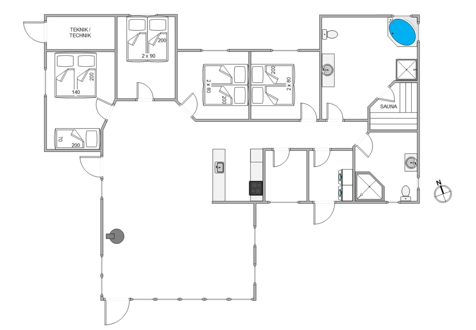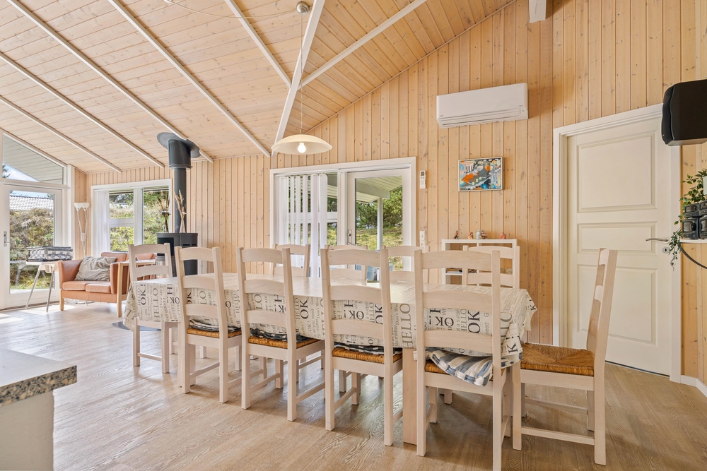 Die zentrale Lage, das warme, helle Ambiente und Wellness mit Sauna und Whirlpool, bilden eine gute Grundlage für einen erholsamen Dänemark Urlaub. 9 Personen können sich auf 4 Schlafzimmer verteilen. Perfekt für mehrere Familien und befreundete Pärchen. In den zwei Badezimmern, beide mit Fußbodenheizung, hat auch jeder die Möglichkeit sich in seinem eigenen Bad einzurichten, um die gewünschte Privatsphäre zu waren.
