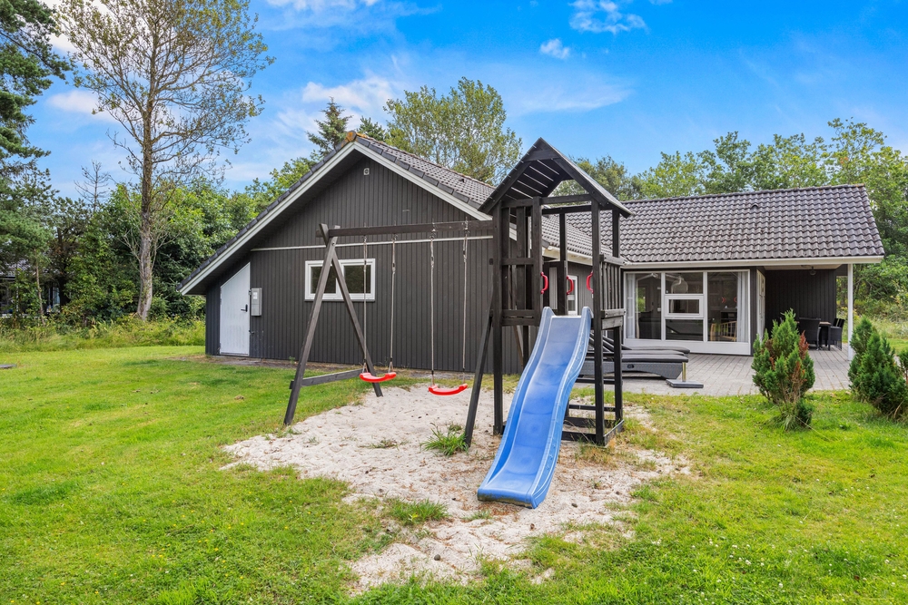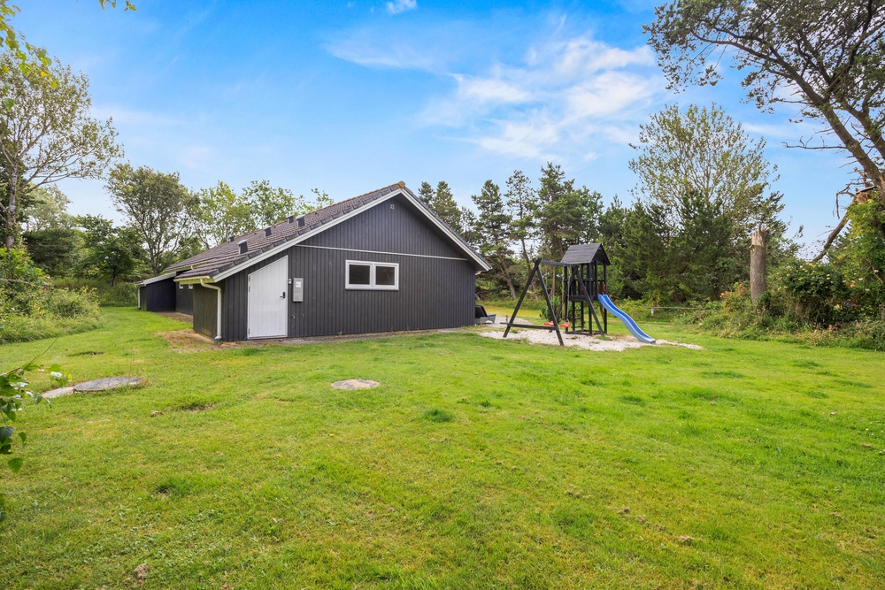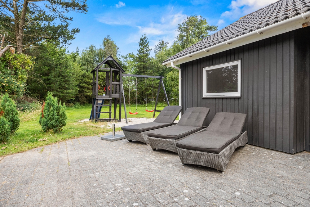 Euer Ferienhaus liegt auf einem 2400 qm großen Naturgrundstück, welches von Büschen und Bäumen umgeben ist. Hier könnt ihr auf der teils überdachten Terrasse, in den guten Gartenmöbeln und Sonnenliegen entspannen und die frische Meeresluft genießen. Für eure Kinder ist jede Menge Platz zum Toben und es gibt sogar eine Schaukel und einen Sandkasten zum Spielen.