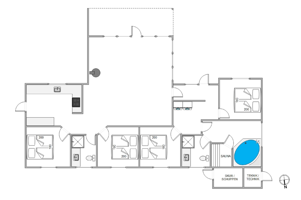 Des Weiteren findet ihr in diesem großzügigen Ferienhaus auch noch zwei praktische Duschbäder mit Fußbodenheizung, so dass ihr euch gut aufteilen könnt. Am Abend stehen in vier gemütlichen Schlafzimmern, bequeme Doppelbetten bereit, in denen ihr eure Batterien wieder aufladen könnt.