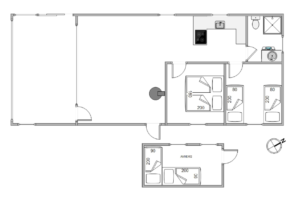 Ausser dem Haupthaus mit zwei Schlafzimmern, einem Badezimmer mit Fussbodenheizung sowie Wohn- und Essbereich gibt es noch ein Nebengebäude. Dies ist guter Rückzugsort für eure abenteuerliebenden Kinder. Diese haben hier ihr ganz eigenes Reich und können sich wie eigene, kleine Hausbesitzer fühlen.