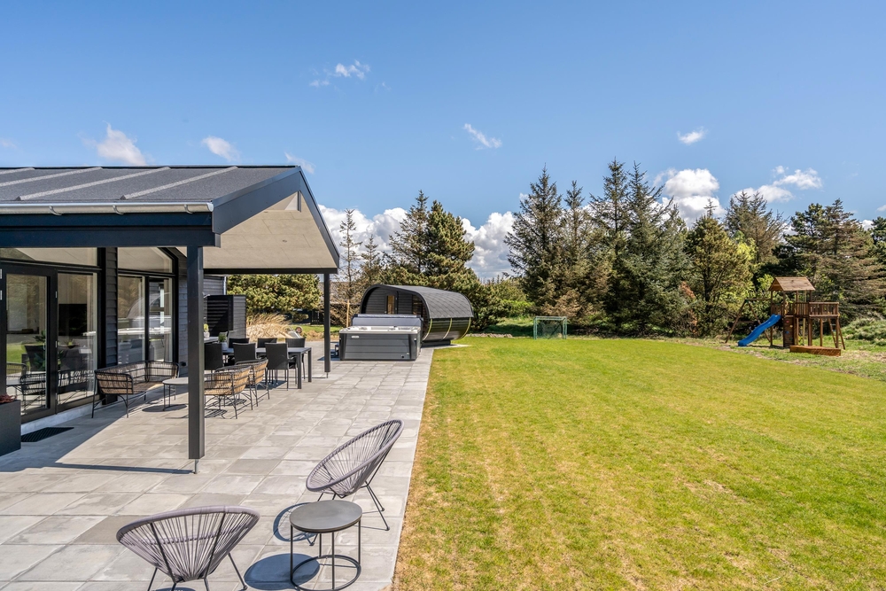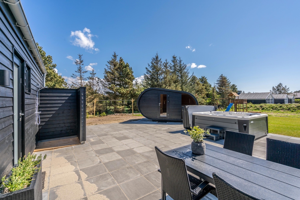 Suchst du ein außergewöhnliches Ferienhaus? Dieses fantastische Luxus-Ferienhaus in Blåvand bietet alles, was das Ferienherz begehrt. Das im Jahr 2020 erbaute Ferienhaus bietet eine qualitätsbewusste und stilvolle Umgebung mit Infrarot-Sauna, Whirlpool, Aktivitätsraum, Fußbodenheizung im ganzen Haus und einer schönen Terrasse mit Whirlpool und Sauna im Freien!