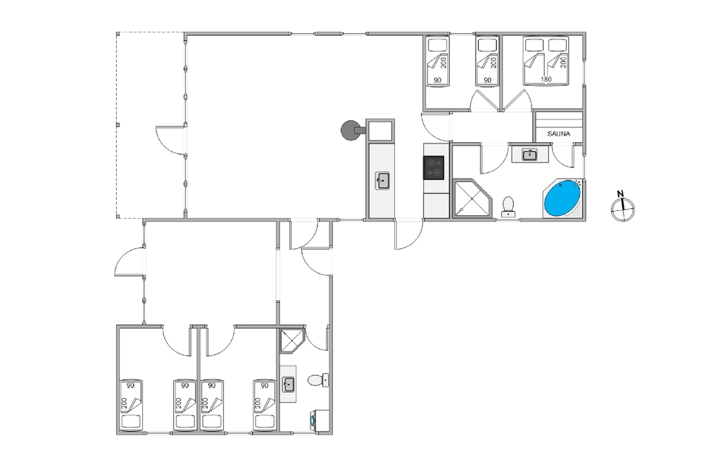 Mit zwei modernen Badezimmern, jeweils ausgestattet mit Fußbodenheizung und Dusche, lässt dieses Ferienhaus keine Wünsche offen. Für Spaß sorgen ein Poolbillardtisch und ein Tisch-Kicker im Aktivitätsraum. Das Schlafangebot besteht aus einem gemütlichen Schlafzimmer mit Doppelbett und drei weiteren Schlafzimmern, die jeweils mit zwei bequemen Einzelbetten ausgestattet sind.