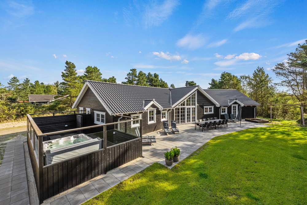 Dieses großzügig eingerichtete Ferienhaus wurde 2023 im skandinavischen Stil neu erbaut und befindet sich dicht am Zentrum Blåvands auf der Adresse Pouls Bjerge 6. Plant ihr einen Urlaub mit Freunden oder mehreren Familien, ist dieses Ferienhaus die perfekte Wahl. Hier erwarten euch Highlights, wie eine Dampfsauna, ein Swimmingpool, ein Außenwhirlpool, Billard und Tischtennis. Wenn ihr mit eurem E-Auto anreist, könnt ihr es an der Ladestation des Hauses aufladen.