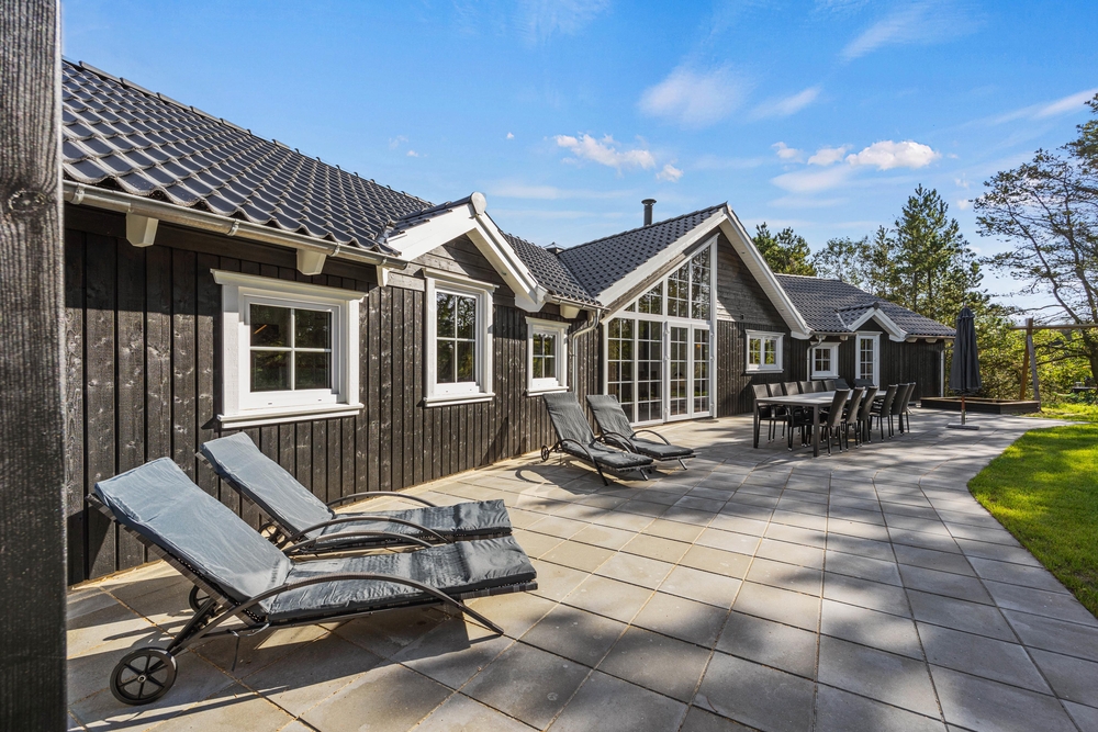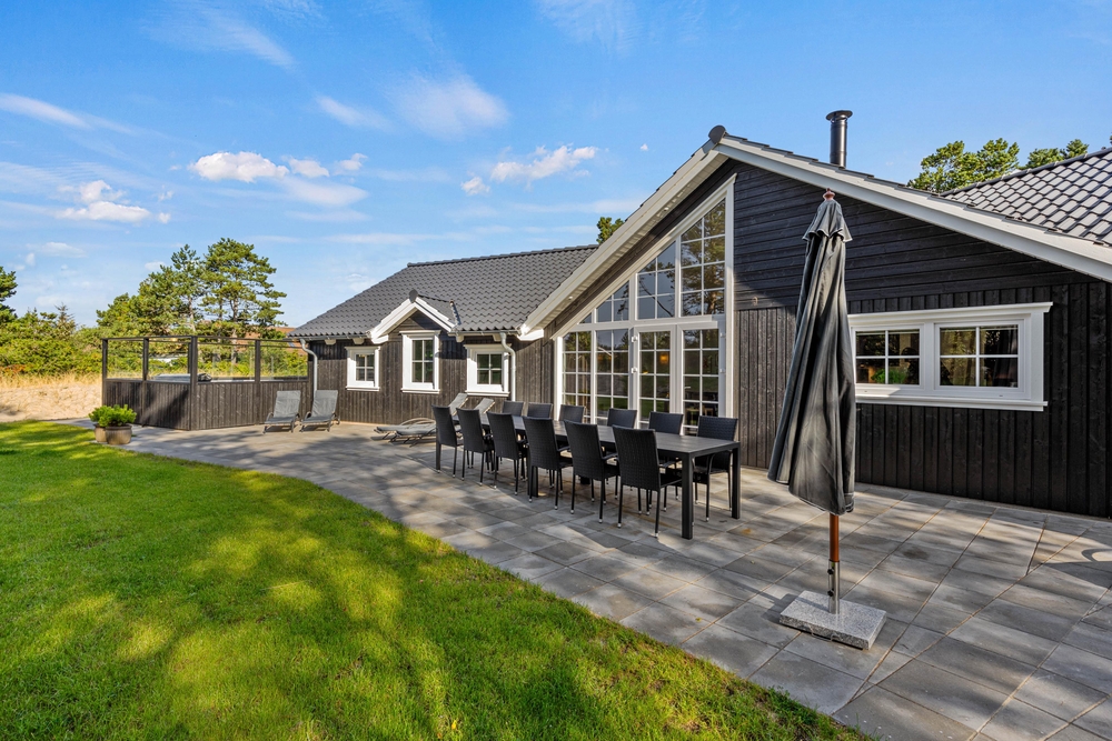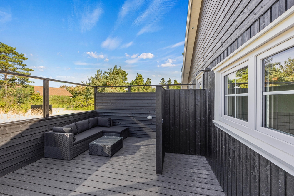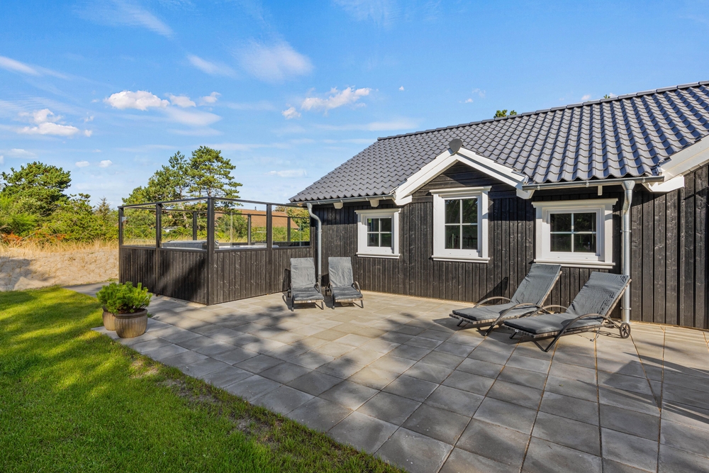 Im Außenbereich des Ferienhauses fehlt es an nichts. Ihr habt hier eine traumhafte Terrasse mit Liegestühlen zum Sonnen und einen großen Esstisch für Grillabende. Im eingezäunten Terrassenbereich findet ihr eine Außendusche, ein Aussenwhirlpool und ein Loungesofa. Im warmen, sprudelnden Wasser unter Blåvand?s einzigartigem Sternenhimmel, lässt sich der Urlaubstag angemessen beenden. Die Außenduschen ist ab 1. April bis 31. Oktober benutztbar.