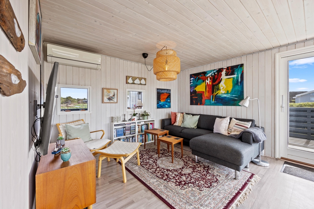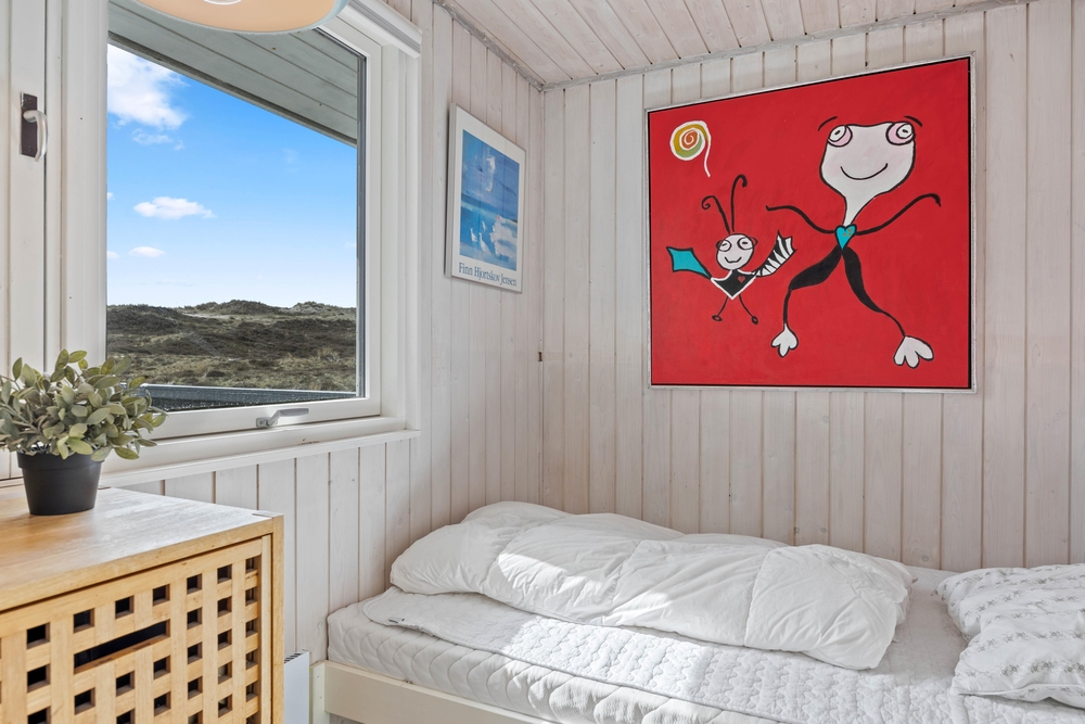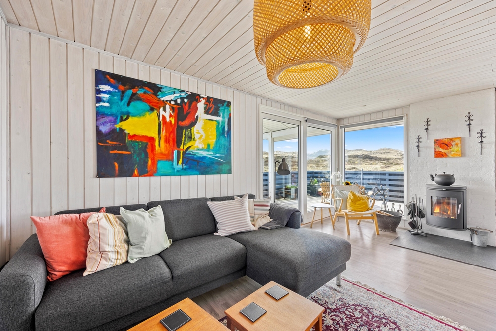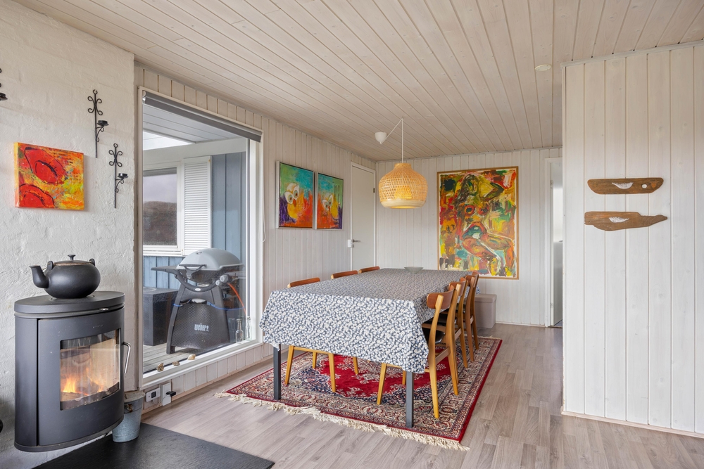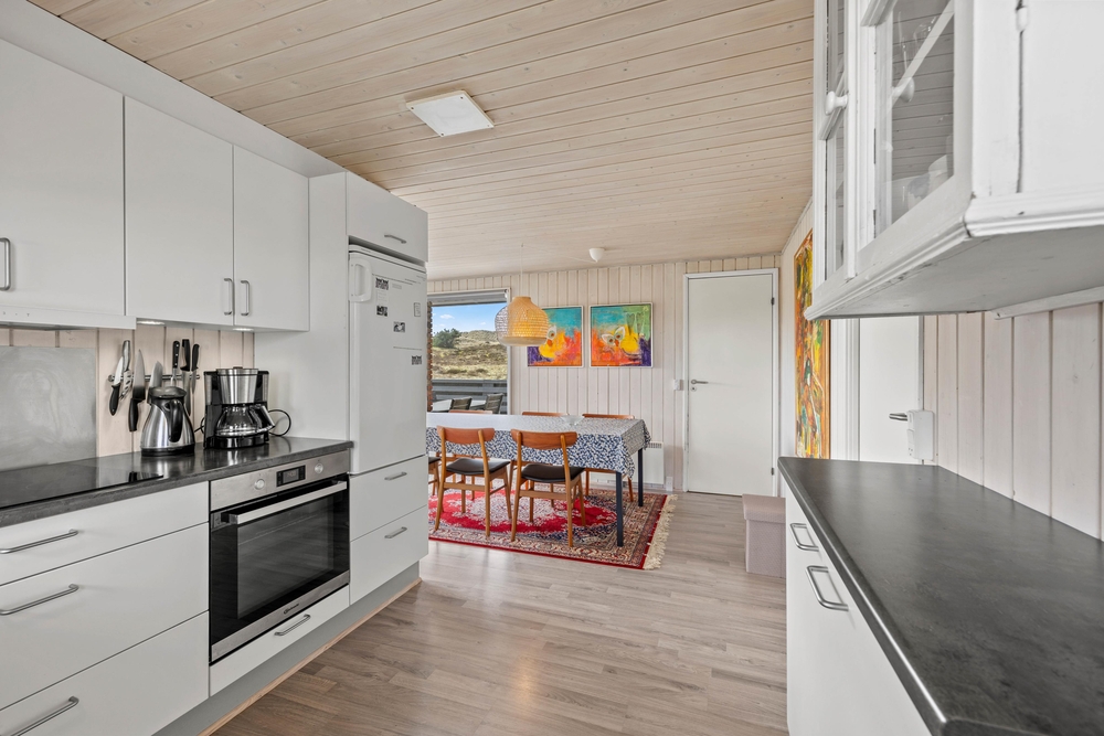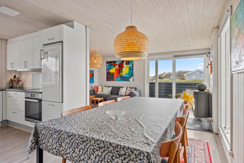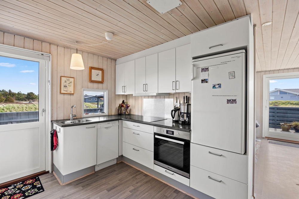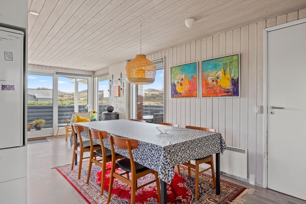 Schon beim Betreten des Ferienhauses werdet ihr die klassische Atmosphäre eines dänischen Ferienhausurlaubs spüren. Die Wände und Decken im gesamten Ferienhaus sind mit Holz verkleidet und hell gestrichen worden. Der Mittelpunkt in diesem schönen Ferienhaus wird sicherlich der gemütliche und helle Wohnbereich sein, in dem sich Wohnzimmer, Küche und Esszimmer in einem Raum befinden. Egal, wo man sich in diesem Bereich aufhält ? man hat immer einen großartigen Blick in die großflächige Natur.