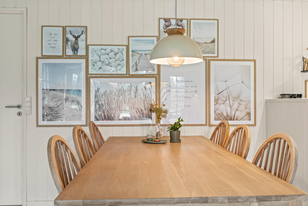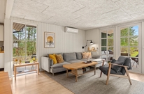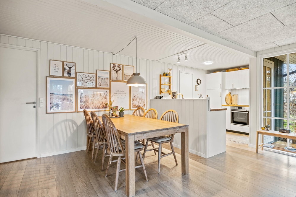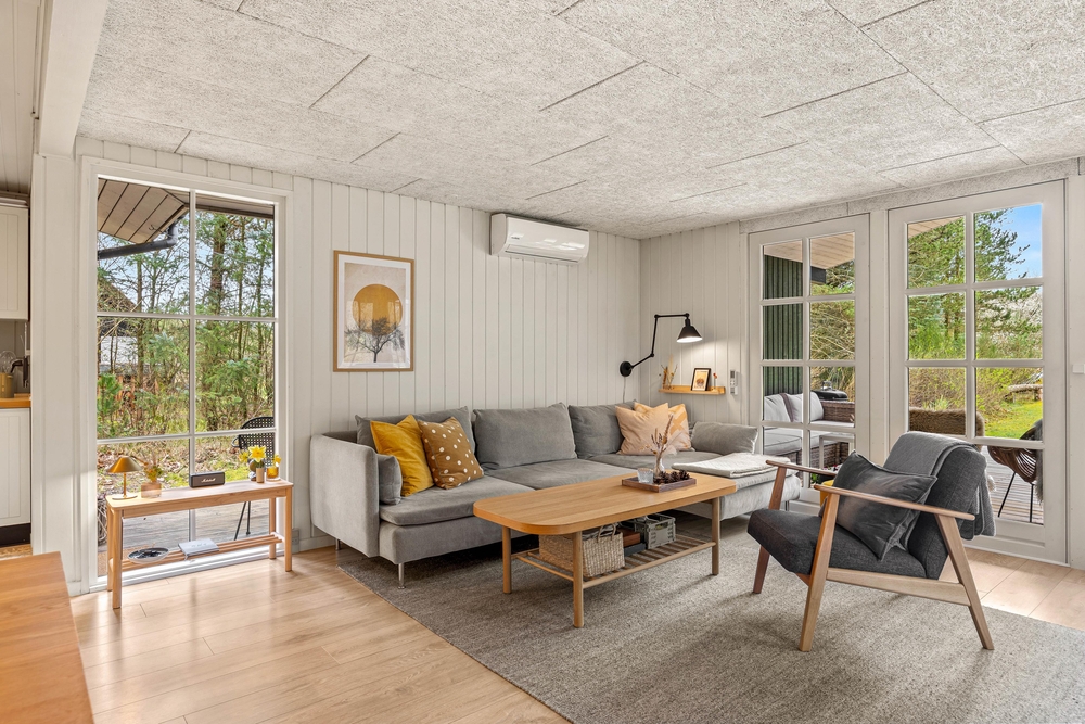 Dieses einladende Ferienhaus strahlt Wärme und Hygge-Atmosphäre aus. Die Einrichtung wurde im typisch skandinavischen Stil gehalten und mit Liebe zum Detail ausgewählt. Die zahlreichen Fenster im Wohnbereich lassen viel natürliches Licht herein und ihr könnt die Aussicht in den schönen Garten genießen. Macht es euch auf dem bequemen Sofa gemütlich, schaut fern oder lasst eure Lieblingsmusik auf der Bluetooth- Lautsprecheranlage laufen. Wenn ihr den Kamin entzündet, könnt ihr dem knisternden Feuer lauschen und euch bei einem leckeren Getränk entspannt zurücklehnen. Zusätzlich steht aber auch eine energiesparende Wärmepumpe zum Heizen zur Verfügung. Am Esstisch ist Platz für den einen oder anderen Spieleabend. Natürlich könnt ihr hier auch eure selbstgekochten Mahlzeiten genießen, die ihr in der gut ausgestatteten, offenen Küche zubereitet habt. Probiert doch auch mal ein typisch dänisches Menü aus.
