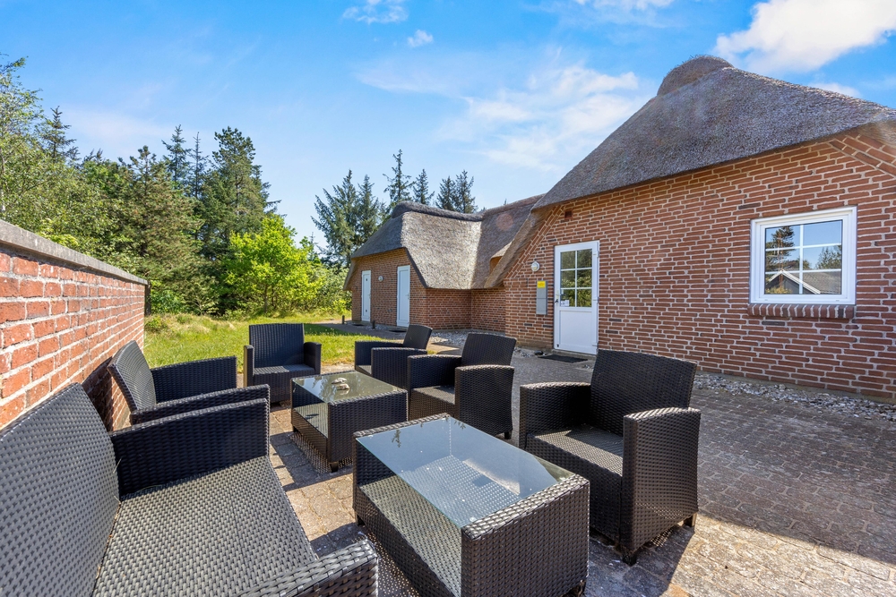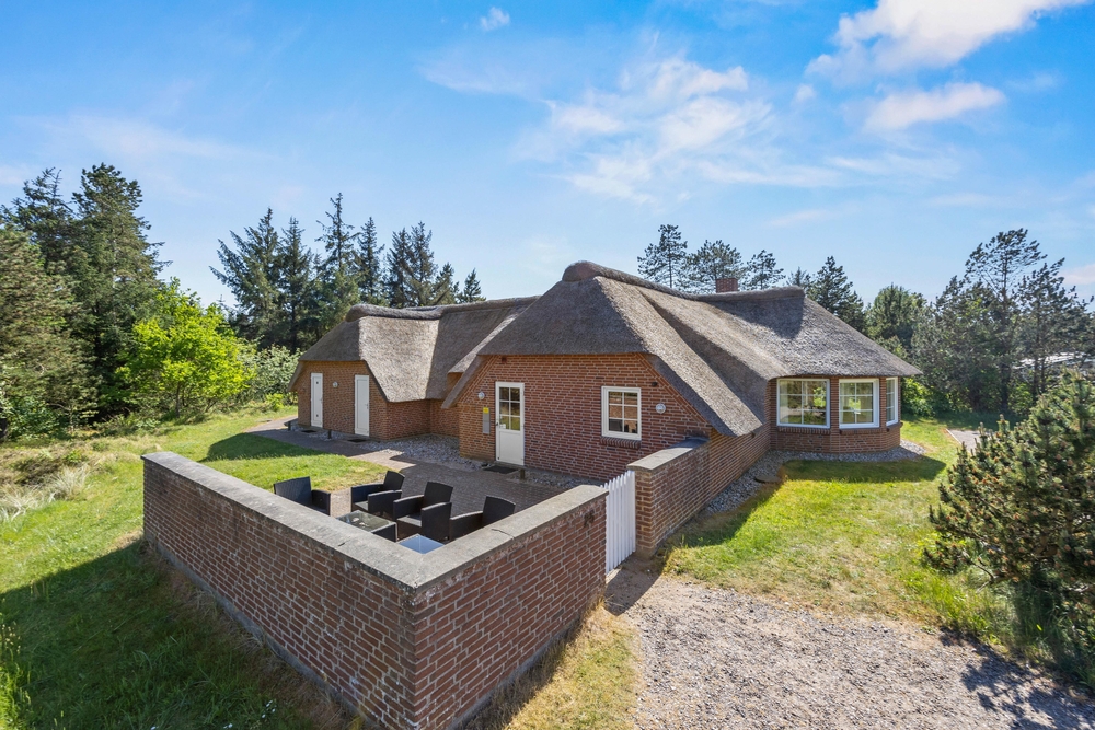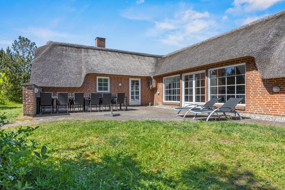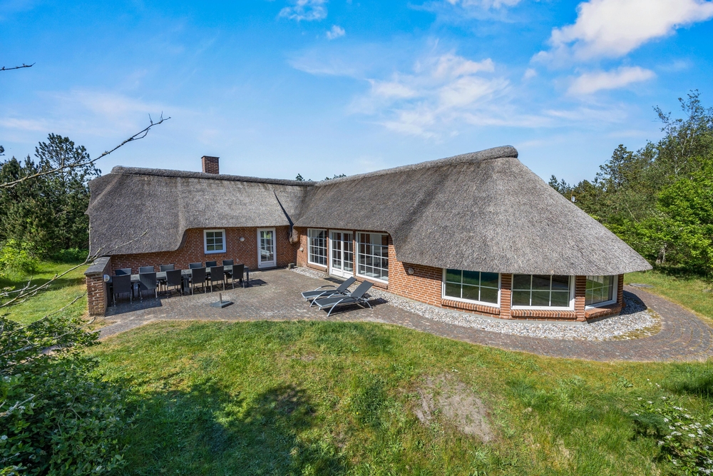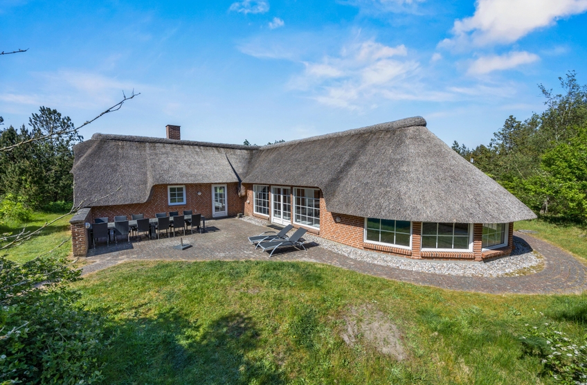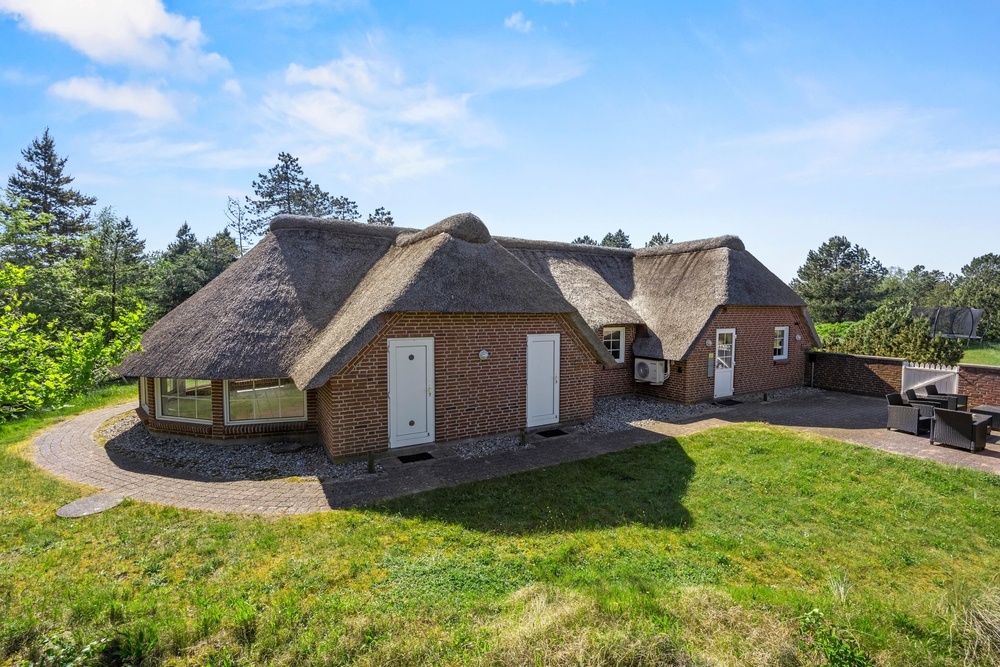 Großes, Reetdach Ferienhaus mit eigenem Swimmingpool und Whirlpool für Badespaß. Ein eigener kleiner Minigolfplatz mit mehreren Bahnen und einer großzügigen Beachvolleyball Bahn und eigene Boule steht euch zur verfügung. Hier ist Platz für 11 Personen und zwei Hunde, die das Leben auf der Terrasse und die naturschöne Lage im familienfreundlichen Kongsmark auf der Ferieninsel Rømø genießen können.
