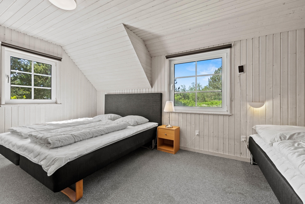 Im Ferienhaus findet ihr 4 gute Schlafzimmer mit Pakettböden und einen Schlafboden oben unter der Dachschräge. In den komfortablen Betten könnt ihr ausgiebig schlafen und regenerieren, bevor der nächste Urlaubstag startet.