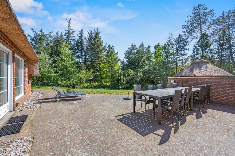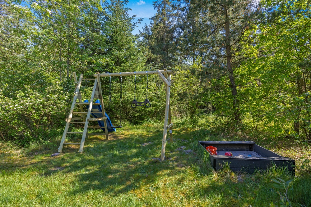 Das große Naturgrundstück mit Terrasse Richtung Südwest ist umgeben von vielen Bäumen, die euch vor dem Wind und neugierigen Blicken schützen. Auf der anderen Seite vom Haus befindet sich eine zweite, ebenfalls sehr geschützte Terrasse, sodass ihr die Sonne in vollen Zügen genießen könnt. Gartenmöbel sind vorhanden. Legt euch auf die Sonnenliegen und lasst die Kleinsten auf der Rasenfläche spielen. Auf dieser eignen sich sowohl Ballspiele, Wikingerspiele und vieles mehr. Die Schaukel und der Sandkasten werden die Kleinsten sicherlich freuen. Macht einen Grillabend und genießt ein kühles Getränk in den Loungemöbeln auf der Terrasse ? das ist Urlaub.