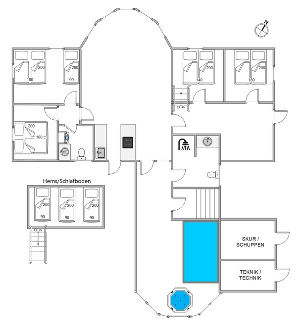 Das gut gepflegte Ferienhaus im Råbjergsvej 25 ist perfekt für einen Familienurlaub, in dem alle sich versammeln und daran teilhaben können. Dieses Haus bietet ausreichend Platz für Entspannung, Spiele und selbstverständlich Badespaß in dem großen Poolraum. Der Poolbereich ist groß genug, dass ihr euch darin stundenlang aufhalten könnt, dabei spielt das Wetter gar keine Rolle. Der Swimmingpool ist 20 m2 groß und bietet eine Menge Möglichkeiten für Ballspiele und tauchen. Die Eltern können von den Sitzmöglichkeiten aus zugucken oder es sich im heißen, wohltuenden Whirlpool bequem machen. Es gibt außerdem eine Sauna, in der ihr euch nach der frischen und salzigen Nordseeluft am Strand wieder aufwärmen könnt. Für Sport und Spaß sorgt dort auch der Minigolfplatz und das Beachvolleyball-Feld auf dem Grundstück.