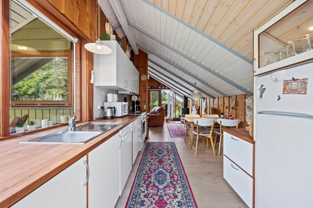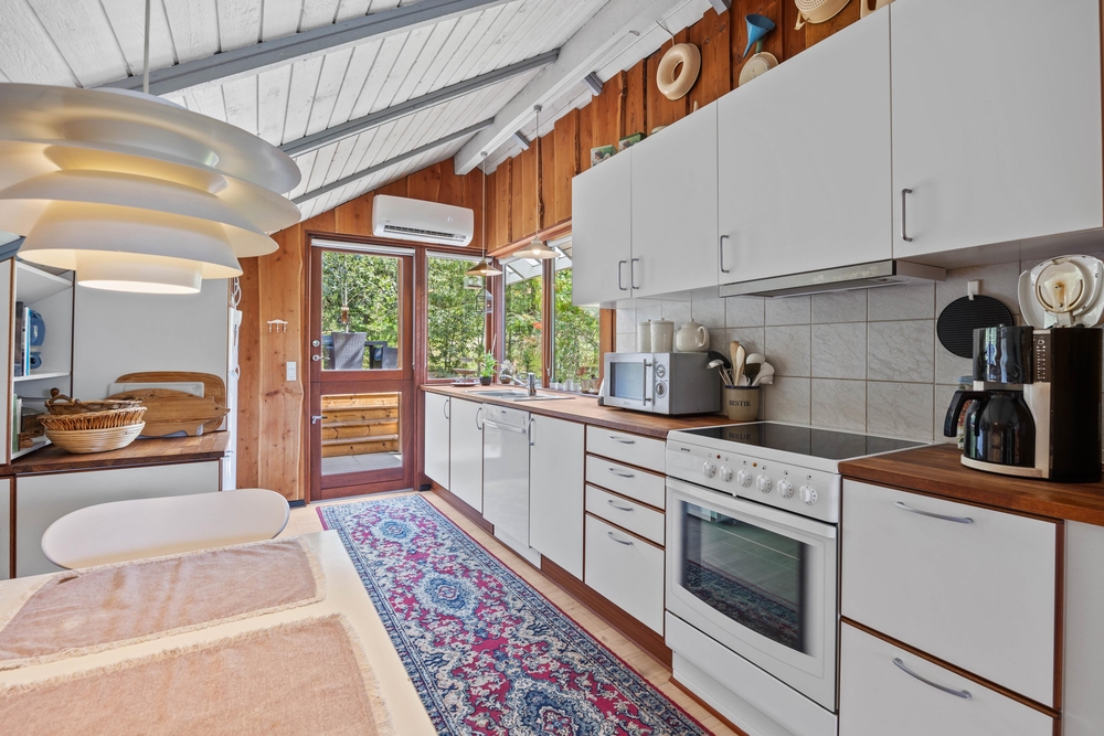 Im Wohnbereich schafft der Kaminofen eine behagliche Atmosphäre, in der ihr euch entspannen könnt. Die moderne Küche ist mit einer Spülmaschine ausgestattet, was das Haushalten im Urlaub deutlich erleichtert. Darüber hinaus sorgen eine Waschmaschine, ein Trockner und eine Wärmepumpe für zusätzlichen Komfort.