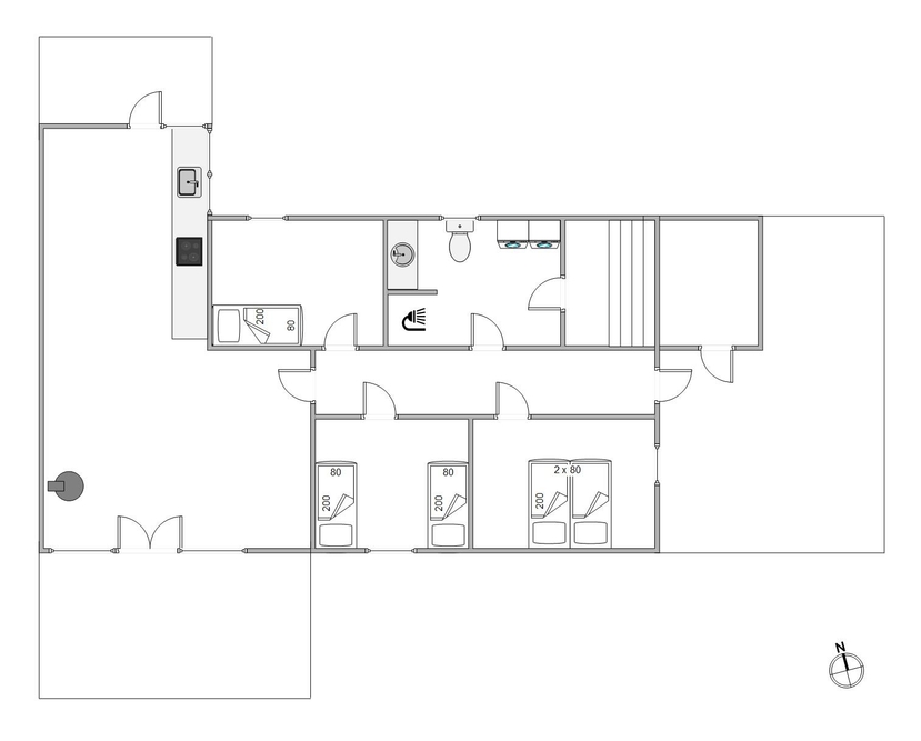 Auf 85 m2 Wohnfläche findet ihr alles, was für einen erholsamen Aufenthalt notwendig ist. Es verfügt über 3 Schlafzimmer, eines davon mit 1 Doppelbett und 2 mit jeweils einem Einzelbett, damit jeder genug Platz und Privatsphäre hat.