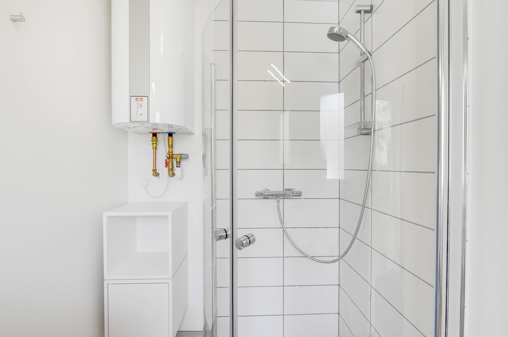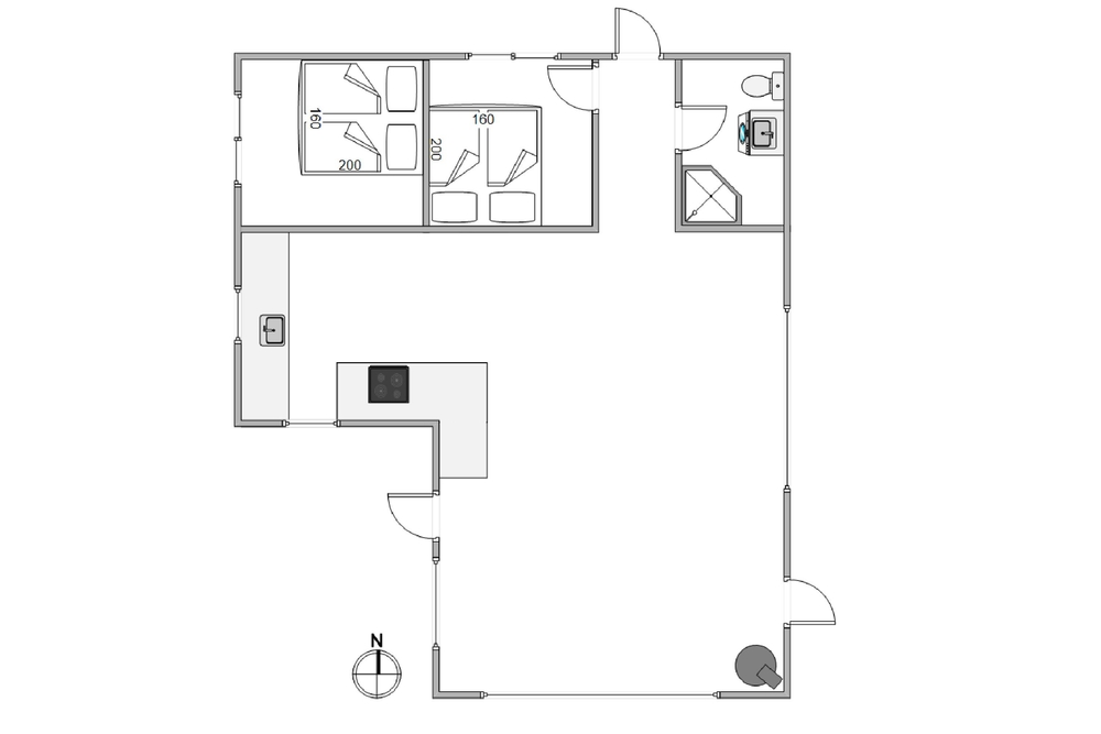 Der Rest des Ferienhauses besteht aus zwei Schlafzimmern und einem Badezimmer mit Fußbodenheizung.