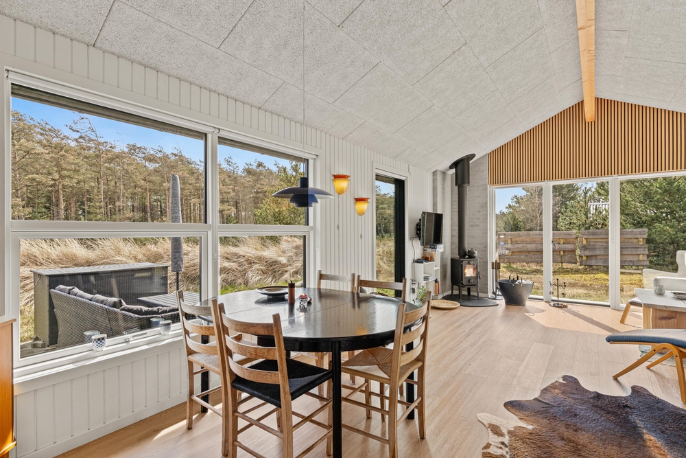 Das 2021 renovierte Ferienhaus heißt euch willkommen mit seiner modernen, gemütlichen Einrichtung. Der offene Wohn-, Koch- und Essbereich lädt mit gemeinsamen Mahlzeiten, Fernseh- oder Spieleabenden zu fröhlichen Stunden ein. Die hohe Decke und die großen Fenster sorgen für ein sehr angenehmes Raumgefühl, der Kaminofen für Behaglichkeit und Wärme.