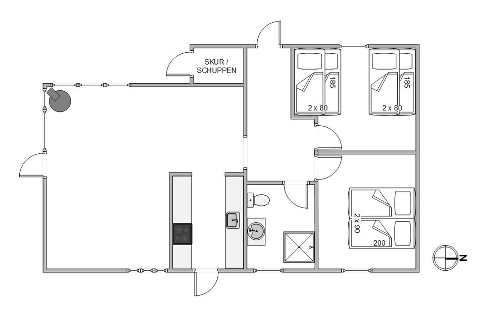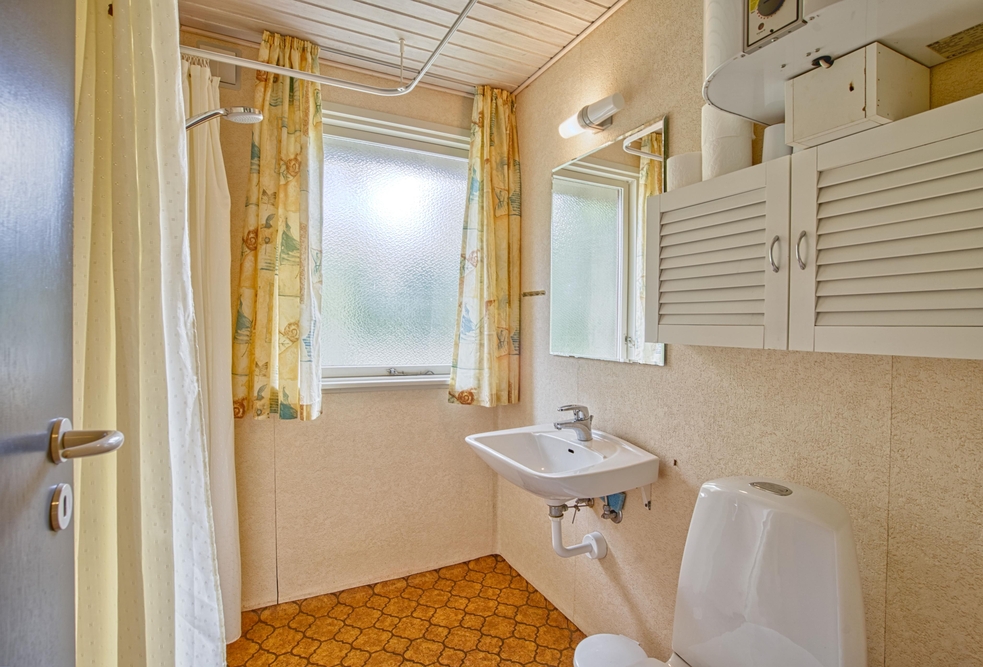 Das 60 m2 große Ferienhaus bietet 2 Schlafzimmer, in denen Ihr im Urlaub ausschlafen könnt. Ein Schlafzimmer ist mit einem Doppelbett ausgestattet, das andere hat einen Etagenbett. Darüber hinaus gibt es 1 Badezimmer im Ferienhaus.