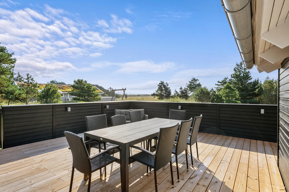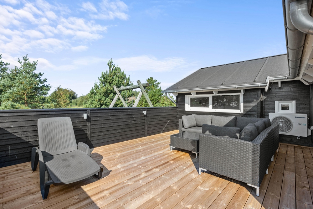 Vom Wohnzimmer des Ferienhauses aus habt ihr Zugang zur schönen Terrasse, die an warmen Sommertagen ein guter Treffpunkt für die ganze Familie ist. Die Terrasse ist umzäunt, so dass ihr euch keine Sorgen machen müsst, dass sich die Jüngsten zu weit wegbewegen. Für eure Kinder gibt es eine Schaukel auf dem großzügigen Naturgrundstück.