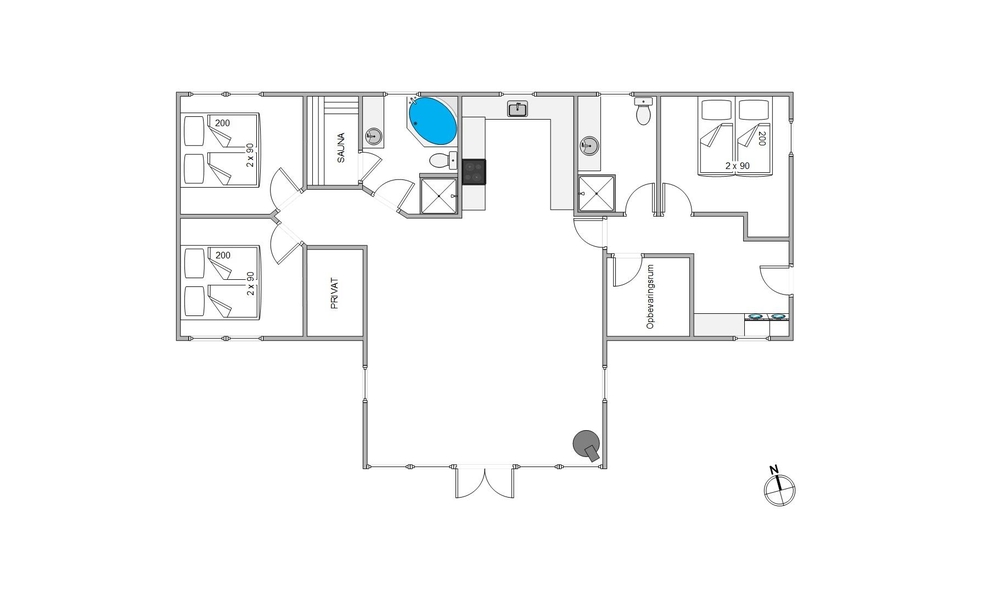 Feuert ihr den Holzofen an, sorgt dieser nicht nur für Wärme, sondern auch für eine besonders gemütliche Urlaubsatmosphäre. Außerdem gibt es im Ferienhaus eine energiesparende Wärmepumpe, mit der ihr die Temperatur in den Räumen nach eurem Wunsch anpassen könnt. Das Ferienhaus hat drei schöne Schlafzimmer, die alle mit bequemen Doppelbetten ausgestattet sind.