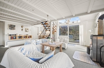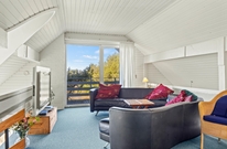 Eine Treppe führt vom Erdgeschoss hinauf in einen Fernsehraum **, wo die schönen Fenster nicht nur für ein wunderbares Licht, sondern auch für einen schönen Blick auf die Dünen sorgen. Auch könnt Ihr hier auf den Balkon des Sommerhauses treten um die herrliche und einzigartige Natur erleben zu können.