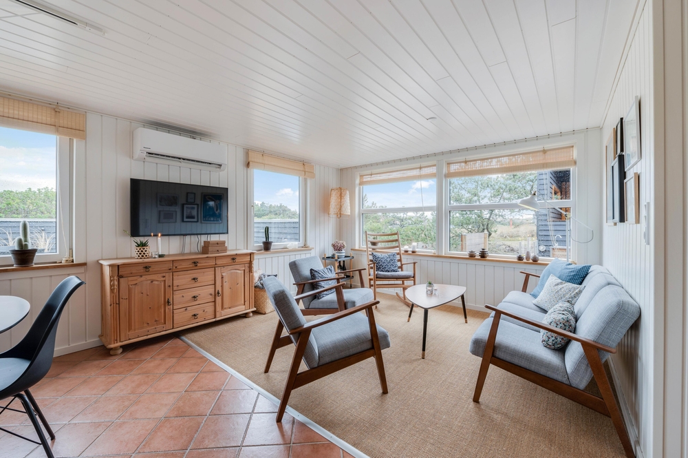 Direkt zwischen dem Meer der dänischen Westküste und dem Ringköbing Fjord liegt euer Ferienhaus nur 650 Meter vom Strand entfernt, wo der kilometerlange Sandstrand euch viel Platz zum Toben und Burgenbauen bietet. Die Umgebung in Bjerregård lädt zu Fahrradtouren, Spaziergängen und Entdeckungstouren mit der ganzen Familie ein. Natürlich haben auch Angler am Fjord diverse Möglichkeiten, ihrer Lieblingsbeschäftigung nachzugehen.
