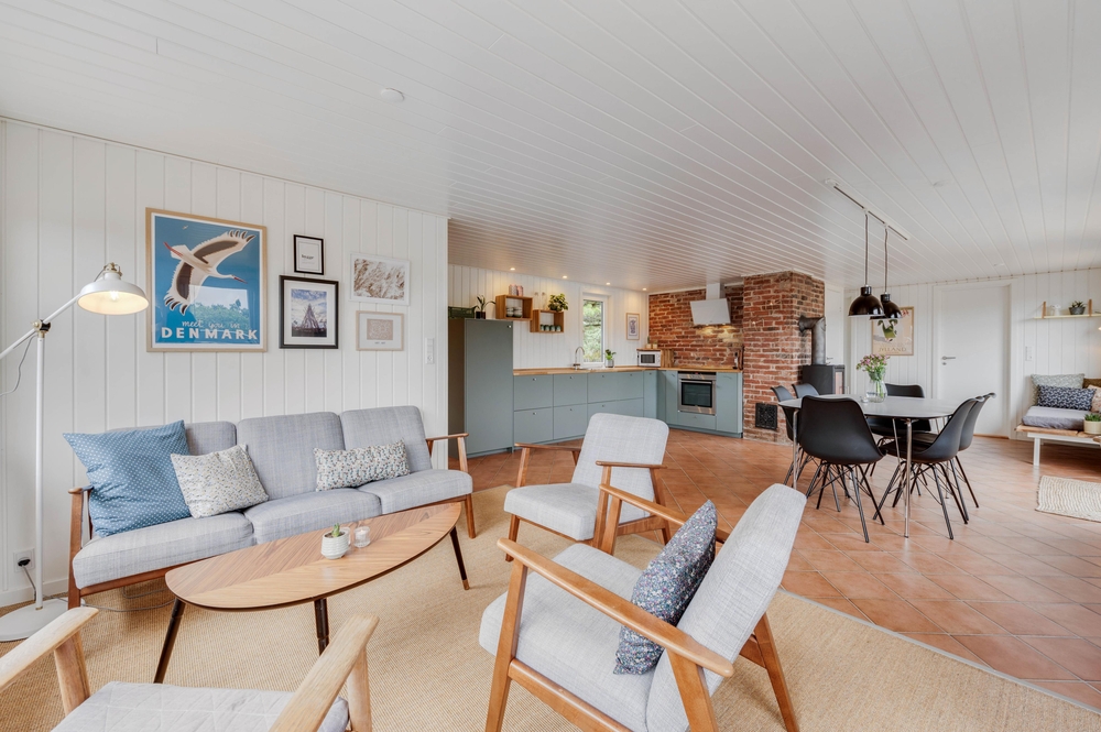 Im gemütlich und modern eingerichteten Ferienhaus bietet eine offene Küche direkten Anschluss zum Wohnzimmer und lädt zu gemeinsamen Stunden am Kamin ein. Der liebevoll dekorierte Wohnraum bietet Platz für jedes Familienmitglied: Zum Lesen in der Sitznische beim prickelnden Kaminfeuer oder zum gemeinsamen Spieleabend am großen Esstisch.
