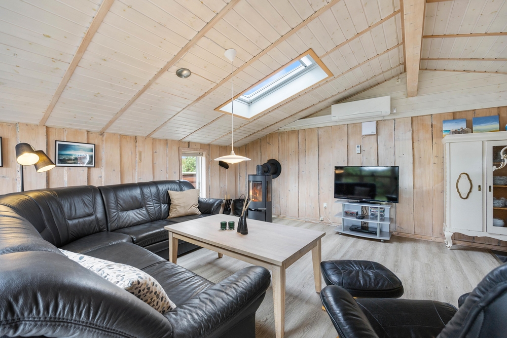 Auf dem großzügigen Sofa könnt ihr euch einen kuschligen Abend machen. Schaut gemeinsam einen Film (es gibt 3 deutsche Kanäle in diesem Ferienhaus.)oder genießt die Wärme des Kamins bei eurem Lieblingsbuch und einem leckeren Glas Wein. Dank der Wärmepumpe könnt ihr aber auch ohne Kamin das Ferienhaus schnell und energiesparend aufwärmen.