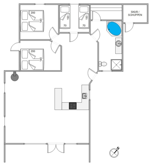In der offenen Küche werdet ihr nichts vermissen. Hier findet ihr eine gute und vollständige Ausstattung, die unter anderem eine Spülmaschine und eine Kühl-Gefrierkombination enthält. Der nächste Kochabend mit der ganzen Familie kann also kommen. Im modern gestalteten Badezimmer erwartet euch euer eigener Whirlpool für entspannte Stunden im warmen Wasser. Dank der Fußbodenheizung bekommt ihr auch nach einer Dusche keine kalten Füße.
