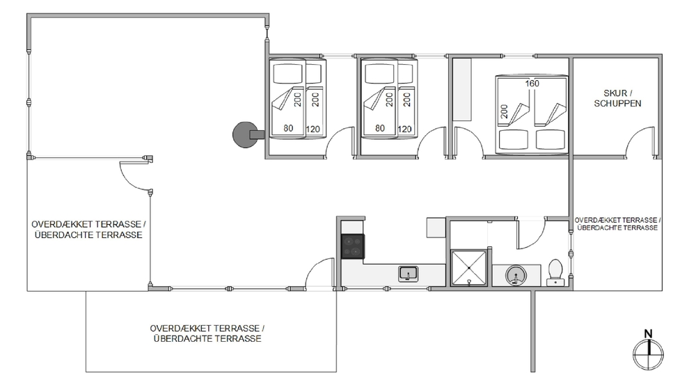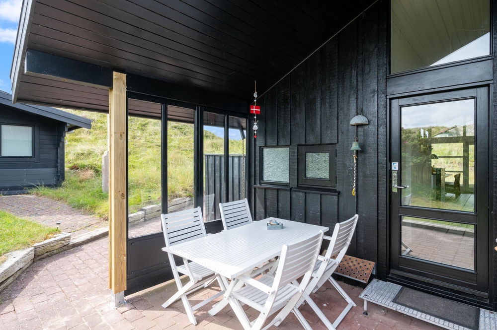 Vom Esszimmer aus gelangt ihr direkt auf die gemütliche, teilweise überdachte Terrasse, wo ihr die sonnigen Tage im Liegestuhl genießen oder Holzkohle auf den Grill werfen und ein leckeres Abendessen zubereiten könnt. Euch steht sogar eine kleine überdachte und geschützte Morgenterrasse zur Verfügung, auf der ihr eine frisch gebrühte Tasse Kaffee und ein frisch gebackenes Frühstücksbrot genießen könnt. Die Einkaufsmöglichkeiten sind nur 2000 Meter entfernt, sodass ihr euch jeden Tag eures Urlaubs mit frischen Lebensmitteln eindecken könnt.