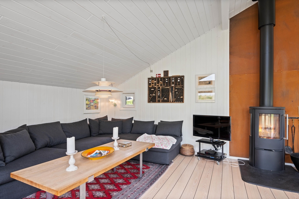 Und warum solltet ihr euren Urlaub nicht damit beginnen, euch in der Ecke des Wohnzimmers zurückzulehnen und dem Knistern des Holzofens zu lauschen? Der Sofaplatz ist vielleicht der beste Platz im ganzen Ferienhaus. Denn durch die großen Fenster wird euch die schöne Aussicht auf die Landschaft auf dem Silbertablett serviert. Es fühlt sich fast so an, als ob die Natur direkt ins Haus eingeladen wurde.