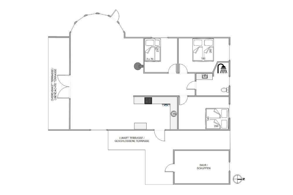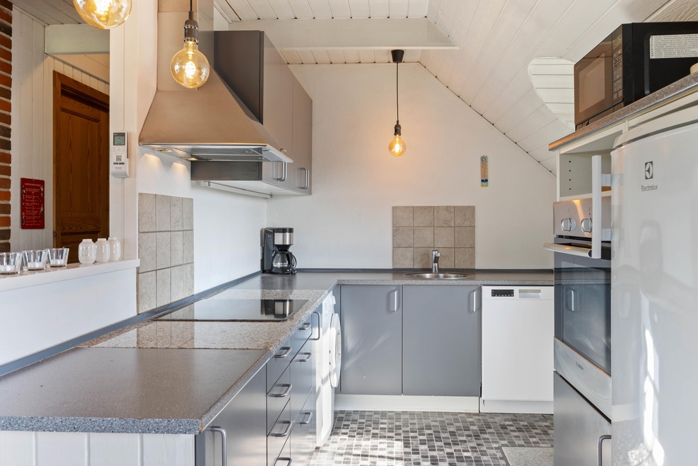 Das Ferienhaus ist mit einer schönen und praktischen Küche ausgestattet, die zum Wohnzimmer hin offen ist. Es gibt genügend Platz für die Zubereitung eurer Urlaubsmahlzeiten ? wenn ihr nicht lieber den Grill auf der Terrasse anwerft. Die Küche ist gut ausgestattet und verfügt über einen Geschirrspüler, eine Mikrowelle und einen Kühlschrank mit einem 20-Liter-Gefrierfach.