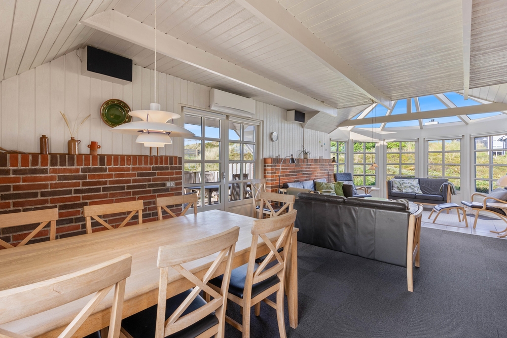 Dieses schöne Ferienhaus in Houvig liegt auf einem herrlichen Naturgrundstück, auf dem es sowohl Platz für Aktivitäten als auch für Entspannung gibt. Es ist ideal, um sich mit einem guten Buch oder einer kalten Erfrischung in der Hand auf der Terrasse niederzulassen, während die Kinder auf der Schaukel schaukeln. Und wenn ein paar Tropfen vom Himmel fallen, könnt ihr auf der teilweise überdachten Terrasse in Richtung Süden Schutz suchen. Es gibt noch eine zweite Terrasse, die komplett geschlossen ist.