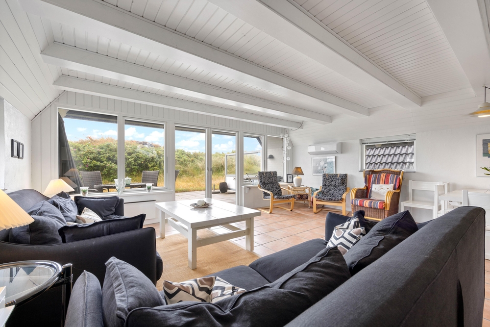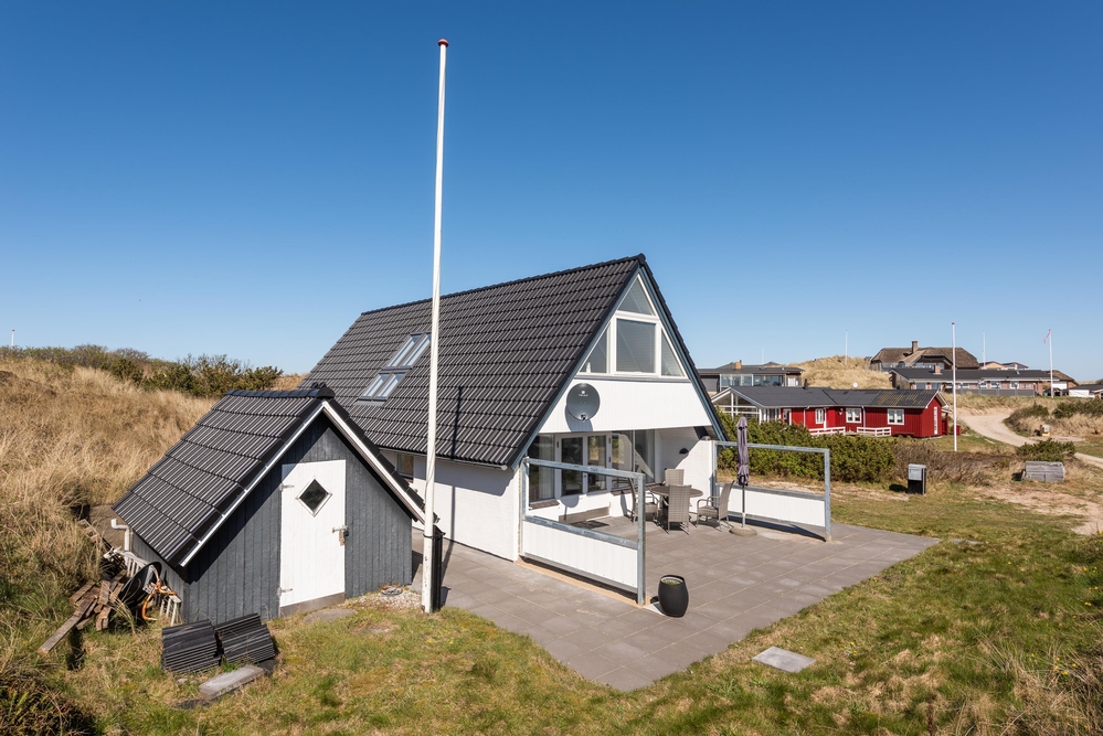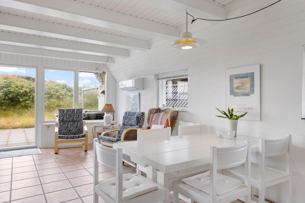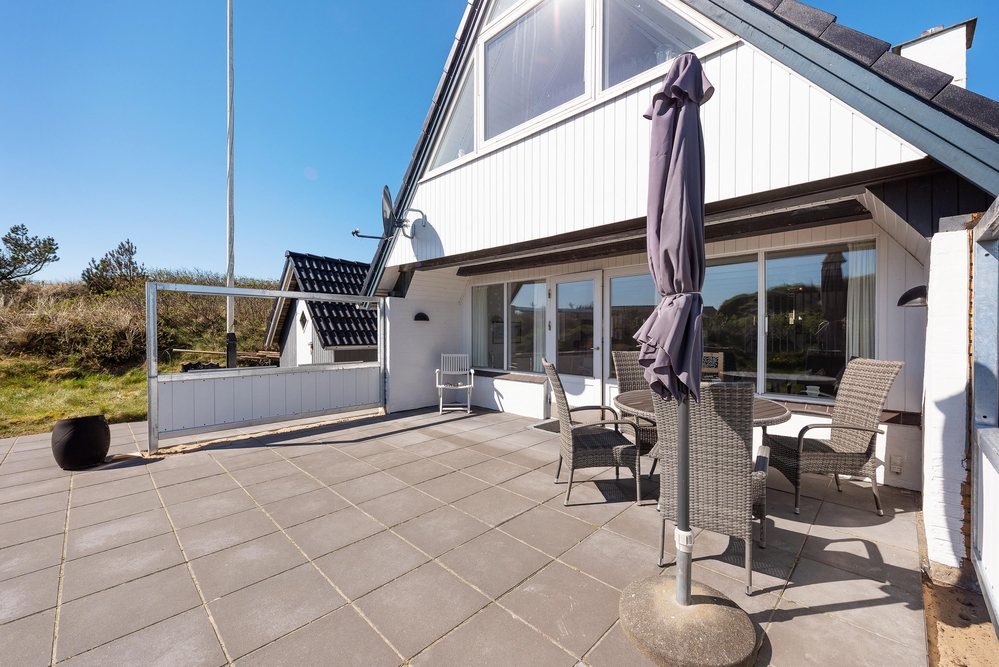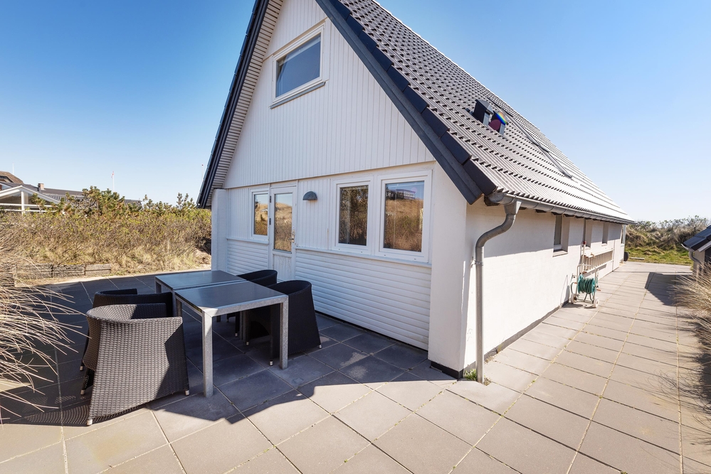 Nur 450 Meter vom Ferienhausgrundstück entfernt liegt der schöne, weiße Sandstrand. Die Westküste Jütlands lädt zu jeder Jahreszeit zu erfrischenden Spaziergängen dem Wasser entlang ein ? und im Sommer könnt ihr euch in den blauen Wellen erfrischen.