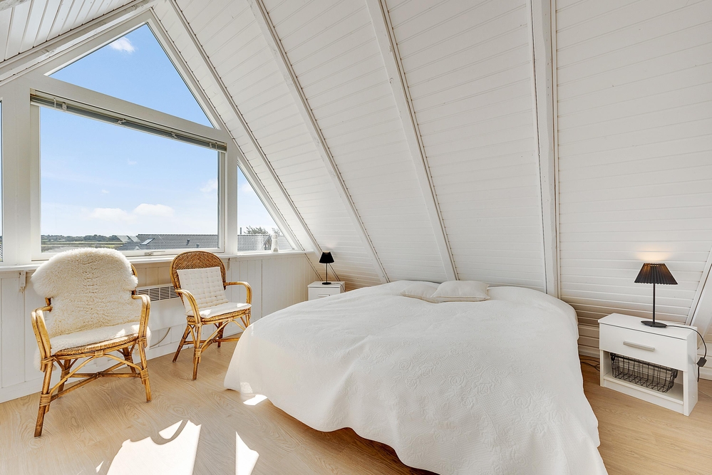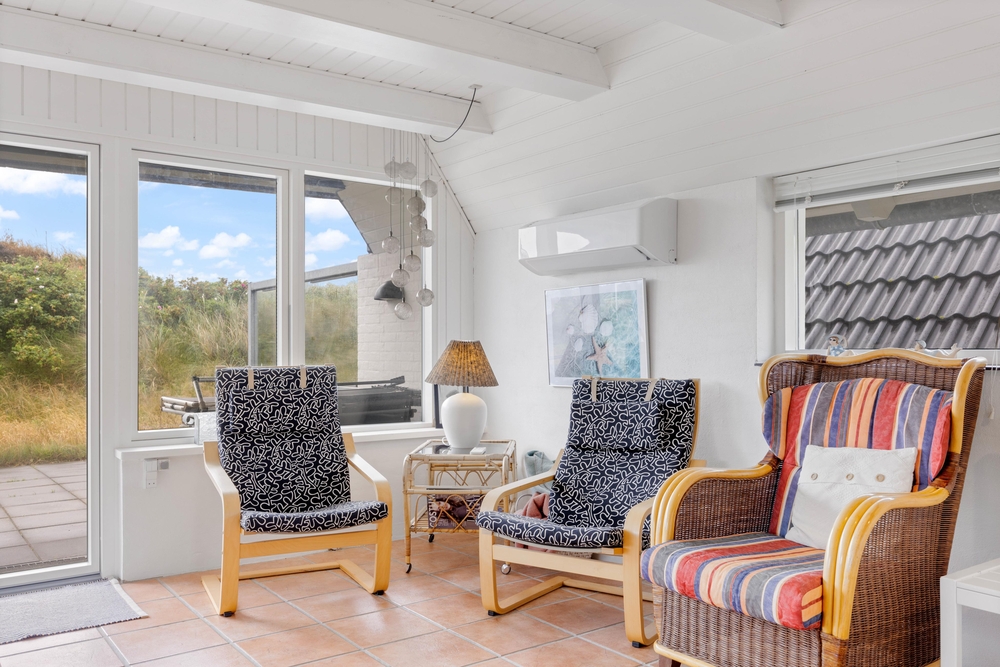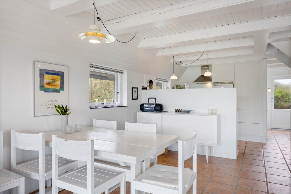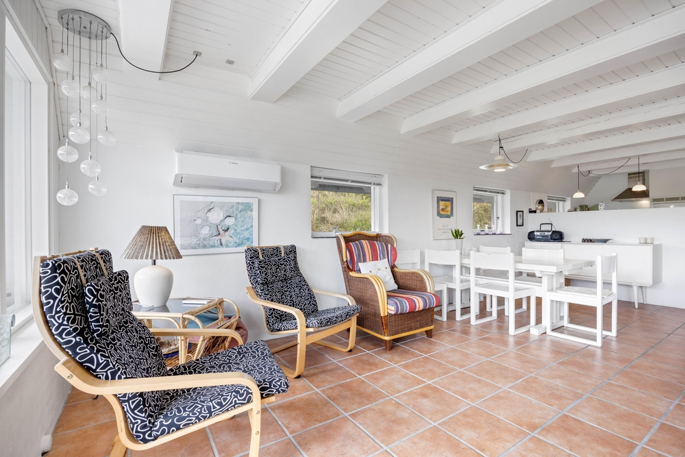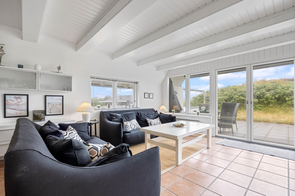 Nur 450 Meter vom Ferienhausgrundstück entfernt liegt der schöne, weiße Sandstrand. Die Westküste Jütlands lädt zu jeder Jahreszeit zu erfrischenden Spaziergängen dem Wasser entlang ein ? und im Sommer könnt ihr euch in den blauen Wellen erfrischen.