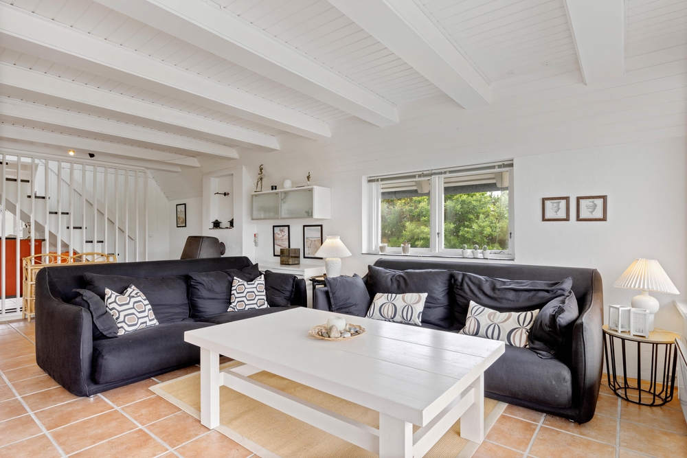 Das Sommerhaus auf Regnspovedalen 7 verfügt über 117 Quadratmeter Wohnfläche auf 2 Etagen verteilt. Die gemütliche Einrichtung mit sichtbaren Deckenbalken und kleinen Ziergegenständen schaffen sofort die klassische Ferienhausstimmung, weit weg vom Alltagsstress.