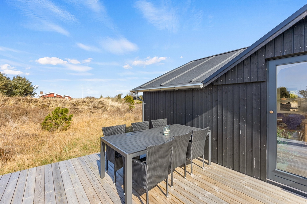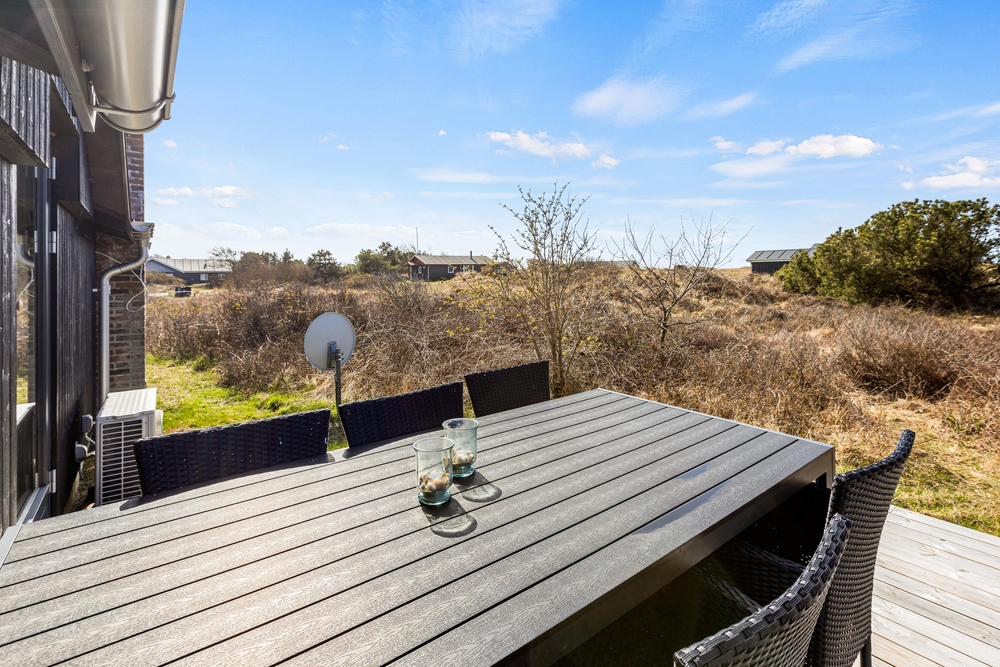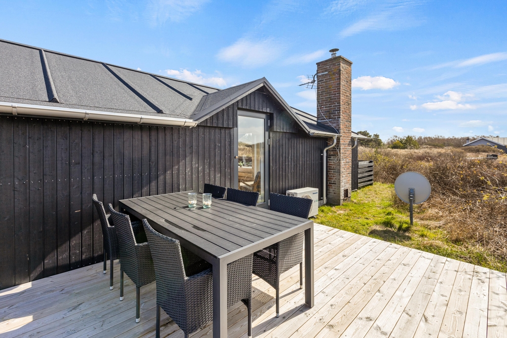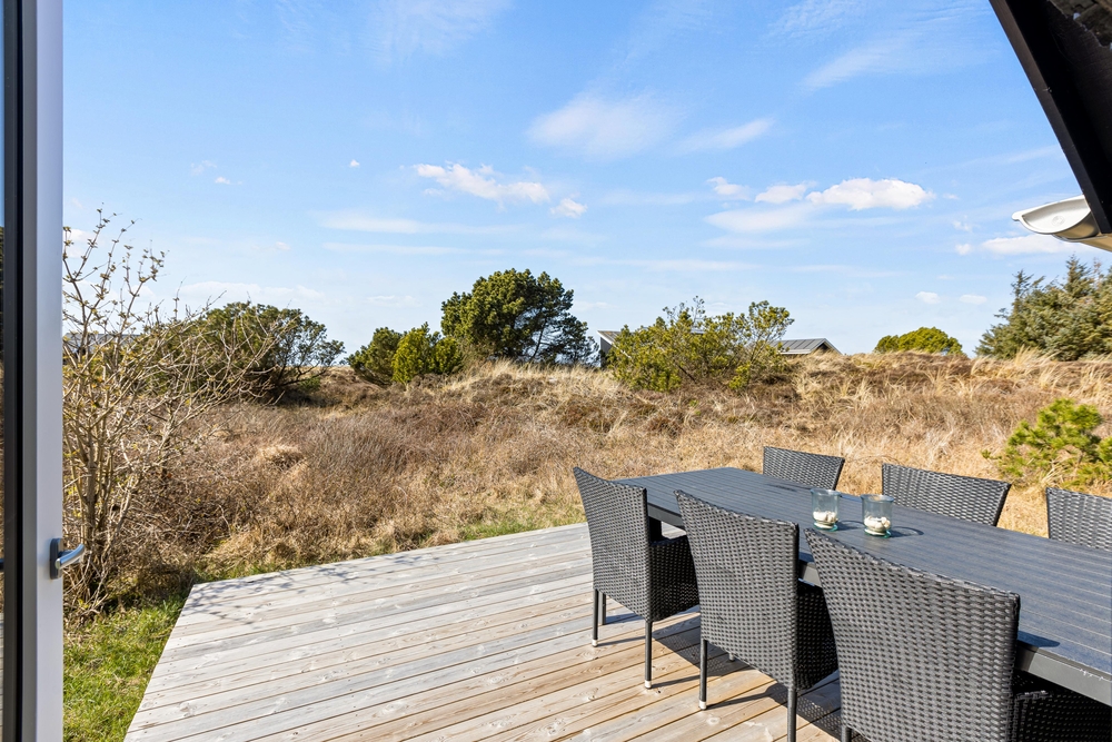 Umgeben von einem hügeligen, 2500 qm großen Naturgrundstück, liegt dieses Ferienhaus mitten in der hier so typischen Heide- und Dünenlandschaft. Auf der Terrasse findet ihr bequeme Sitzmöglichkeiten, von denen aus ihr, die Natur beobachten oder einfach nur die Sonnen genießen könnt. Dieser Ort lädt zum Verweilen ein.