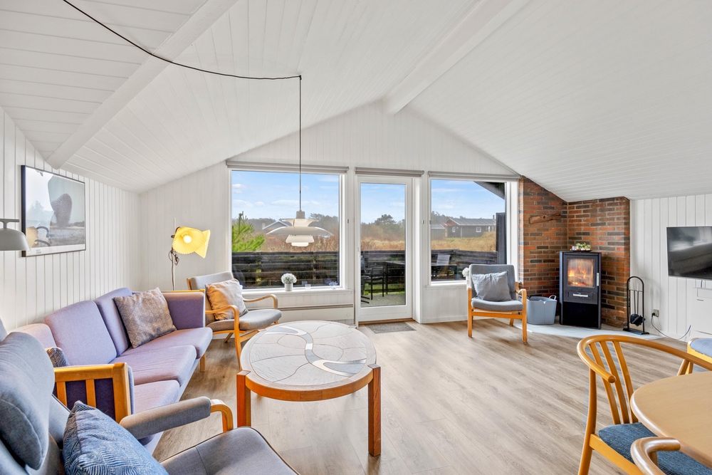 In diesem, mit viel Liebe eingerichteten Ferienhaus, fühlt man sich direkt Willkommen. Die geschmackvoll abgestimmte Einrichtung sorgt für eine gemütliche Atmosphäre. Hier könnt ihr in den bequemen Sitzmöbeln entspannen und den Blick ins Freie durch die Glasfront genießen. Schaut gemeinsam Fern oder genießt einfach das Knistern der Holzscheite im Kaminofen, bei einem guten Buch oder einem Glas Wein.