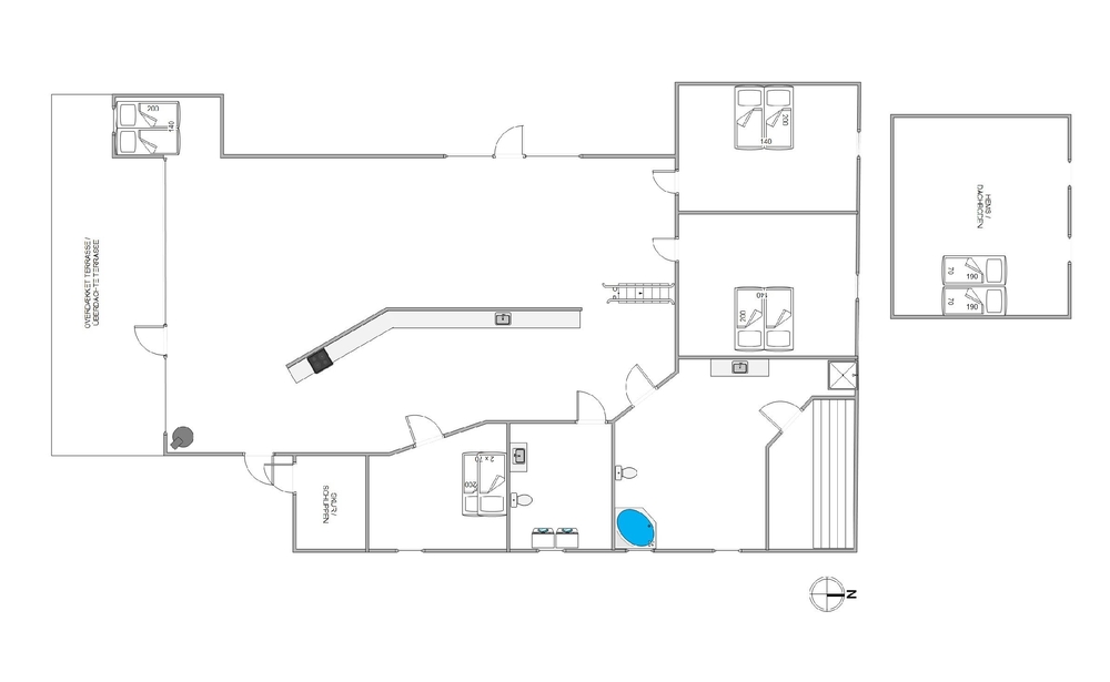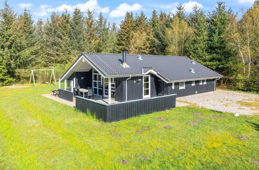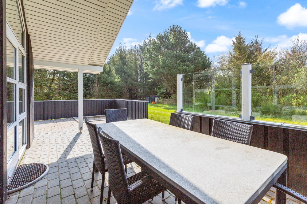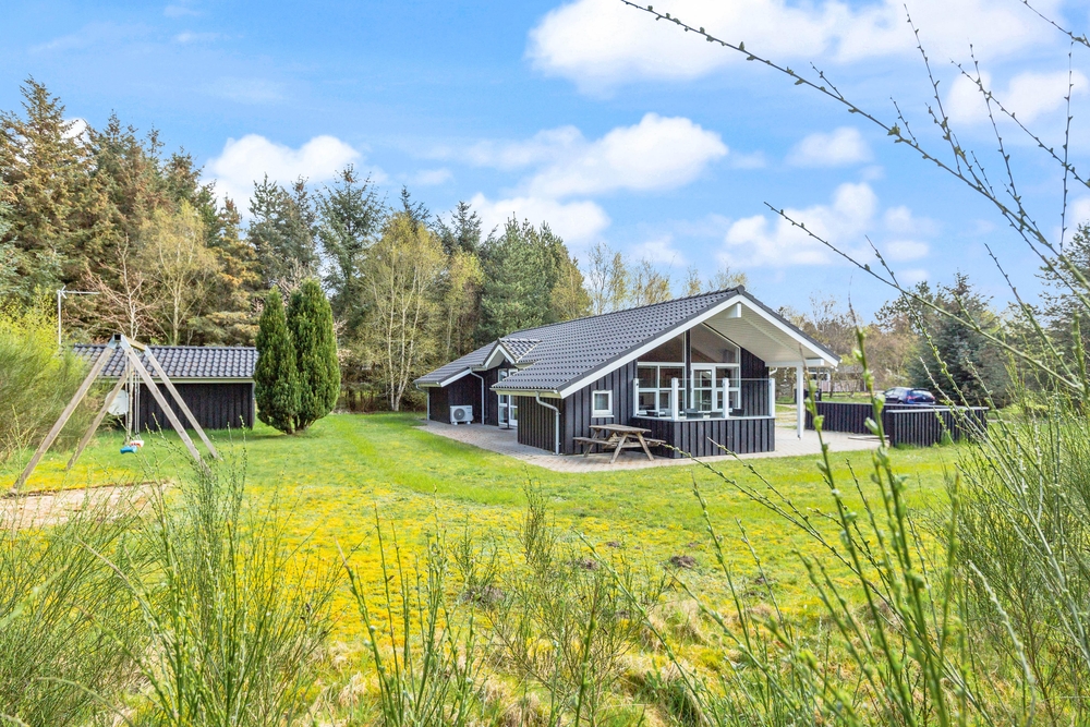 Perfekt für die kühlen Sommertage, an denen sich das dänische Wetter von seiner manchmal skurrilen Seite zeigt, könnt ihr entspannt auf der teilweise überdachten Terrasse des Ferienhauses verweilen. Es gibt also keine Ausreden, an regnerischen Tagen nicht ins Freie zu gehen. Gartenmöbel, Sonnenliegen und ein Grill sorgen für die perfekten Zutaten, um einen Tag an der frischen Luft zu gestalten.