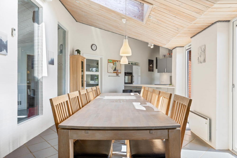 Ein wirklich tolles Ferienhaus, das viel Platz für viele gemütliche und lustige Stunden mit der Familie bietet. Das Ferienhaus bietet Platz für 12 Personen und ist ideal für 2-3 Familien, die einen gemeinsamen Urlaub verbringen möchten, eure Hunde dürft ihr hier natürlich auch mitbringen. Das Ferienhaus befindet sich an der Adresse Risbjergvej 50 in fast ungestörter Lage auf einem großen grünen Grundstück. Darüber hinaus verfügt das Ferienhaus über ein Schwimmbad, eine Sauna und einen Whirlpool. Außerdem gibt es hier für euer Elektroauto einen Ladeanschluss. Den ihr mit eigenen Ladekabel/Adapter nutzen könntet.