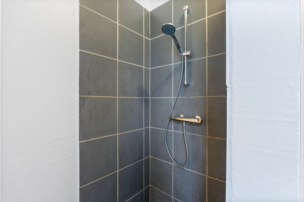 Die 12 Betten sind in 6 Schlafzimmer aufgeteilt ? alle mit Doppelbett. An jedem Ende des Ferienhauses befinden sich drei Schlafzimmer, die ideale Aufteilung für 2 Familien. Darüber hinaus befinden sich auch die beiden Badezimmer an jedem Ende, sodass jede Familie ihr eigenes haben kann. Beide Bäder verfügen über eine eingebaute Fußbodenheizung.