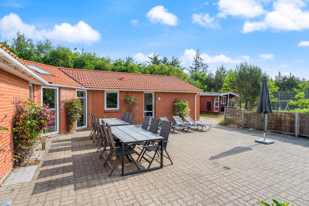 Im Außenbereich des Ferienhauses im Risbjergvej 50 findet ihr außerdem einen Fußballplatz, dieser eignet sich bestens für ein Fußballturnier unter den Mitreisenden. Für die Kleinsten der Familie findet ihr im Garten sowohl einen Sandkasten als auch eine Schaukel. Des Weiteren verfügt das Haus über eine eingebaute Steckdose, an der ihr eure Elektroautos aufladen könnt.
