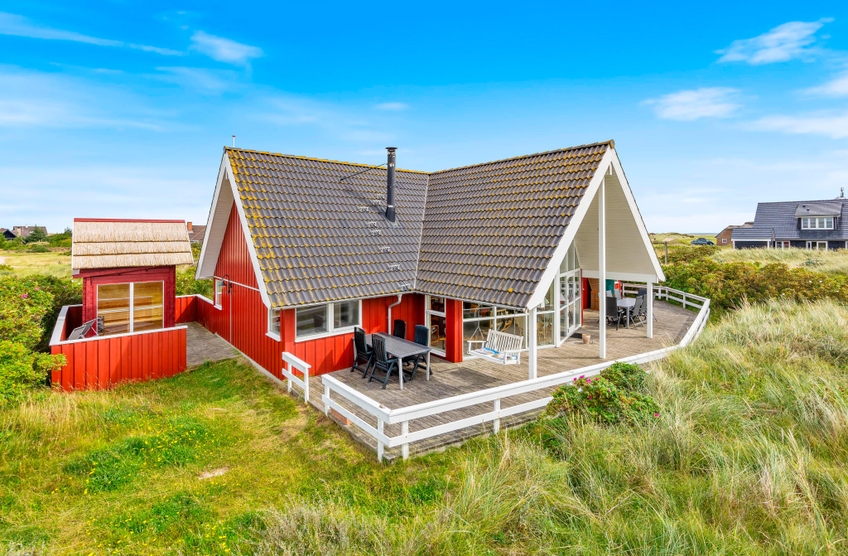Entspannt euch und tankt neue Energie, in einem wirklich schönen Ferienhaus, das genau die richtige Lage hat, wenn ihr die raue, westjütländische Natur liebt und Ruhe sucht. Südlich des Ferienhauses gibt es große Heideflächen und ein kurzer Spaziergang nach Westen bringt euch zum Strand und der tosenden Nordsee. Vom Wohnzimmer aus gelangt man auf die große Holzterrasse, auf der ihr viele Stunden in der Sonne verbringen könnt.