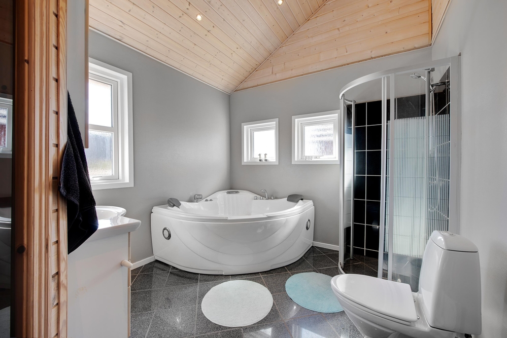 Zusätzlich zum großen und schicken Badezimmer findet ihr auch eine Gästetoilette mit Fußbodenheizung. Das Badezimmer ist mit Fußbodenheizung, Dusche, 2-Personen Eckwhirlpool und einer grossen Sauna ausgestattet. Die große Küche ist mit allen modernen Hilfsmitteln eingerichtet, die man sich nur wünschen kann.