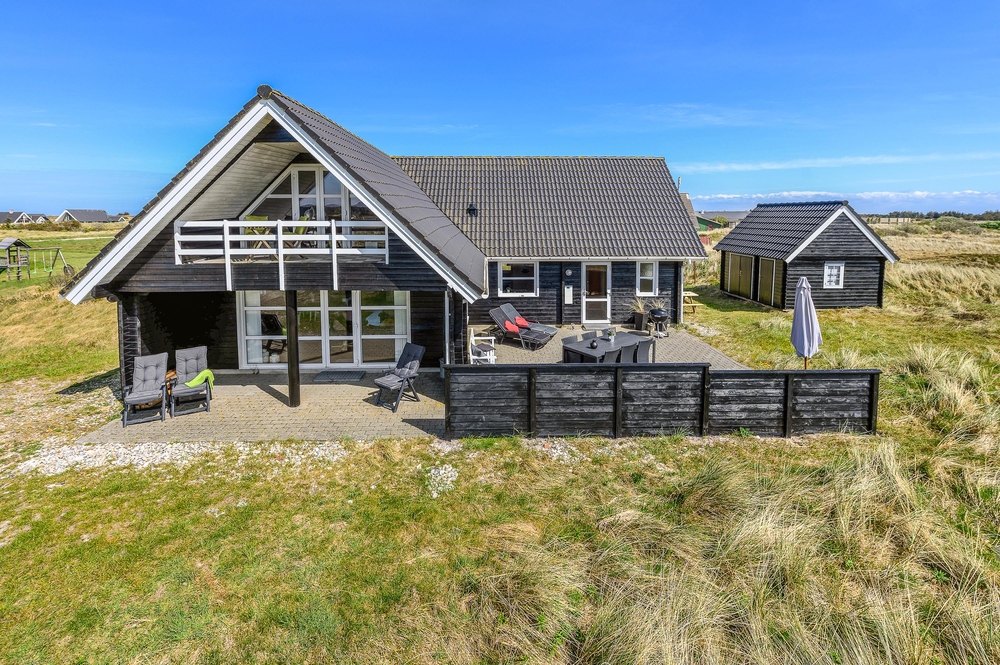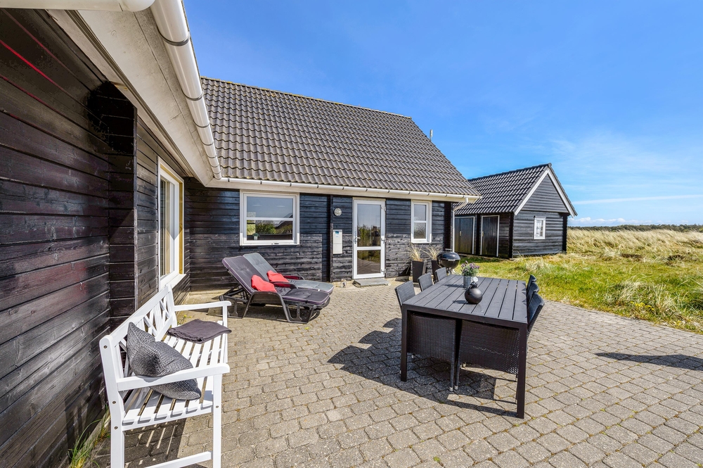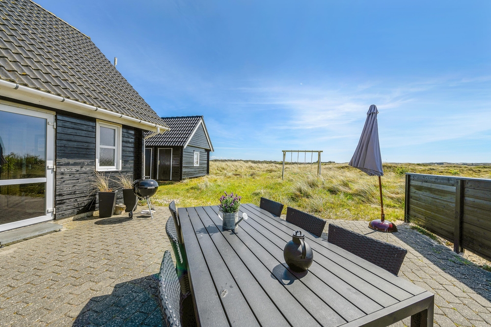 Das Haus und die Terrassen liegen direkt an einer großen, geschützten Dünenlandschaft, welche mit Strandroggen und Heide bewachsen ist. Von hier aus führt ein kleiner Pfad direkt zum Strand. Das Gebiet ist perfekt für lange Wanderungen in der schönen Natur geeignet, sowohl mit Kindern als auch mit dem Hund.