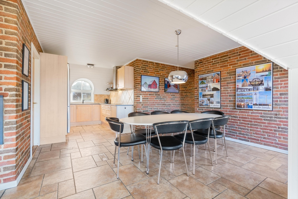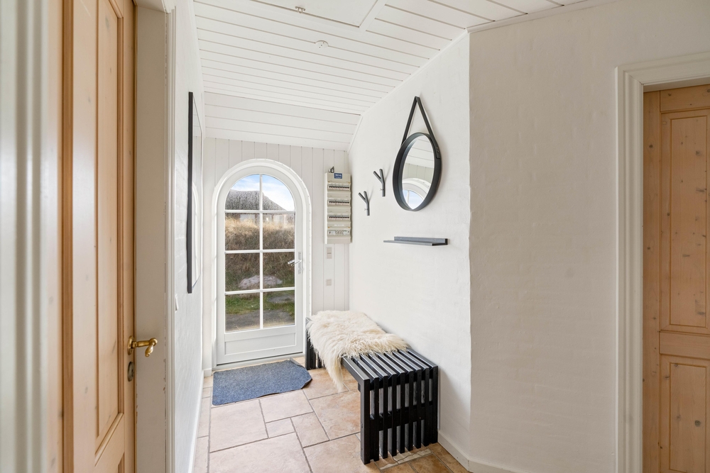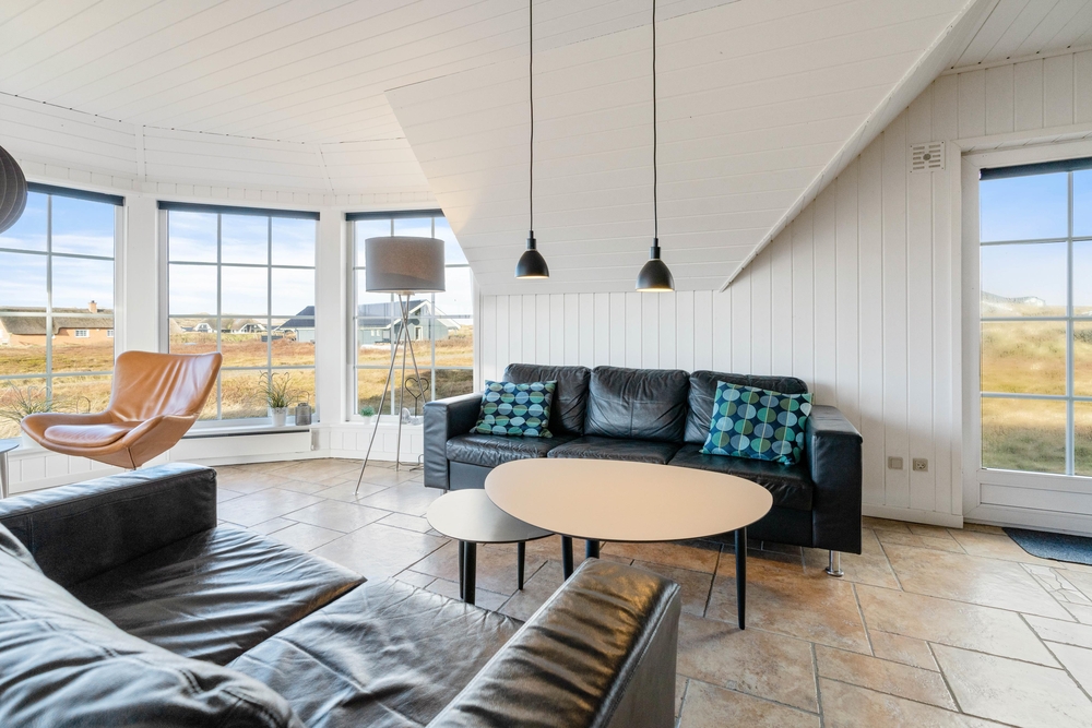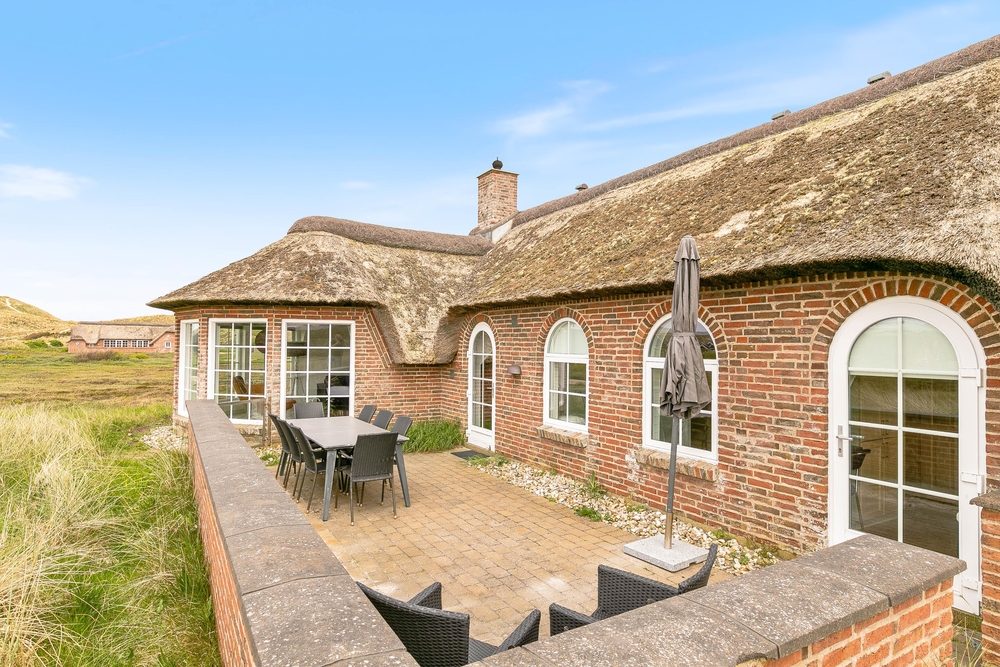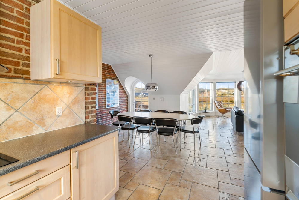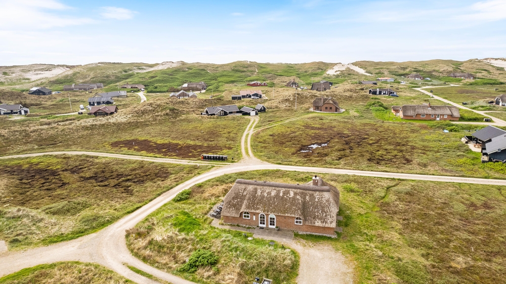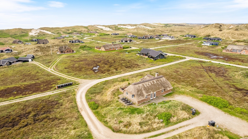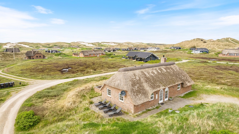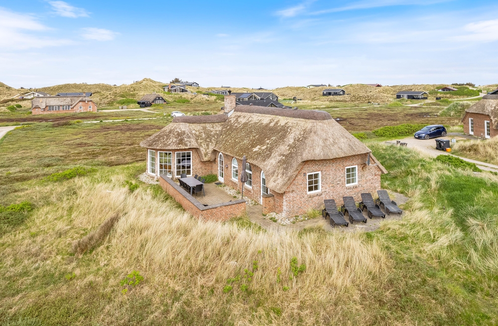 Ein schönes Ferienhaus aus Stein und Reet findet ihr hier im Feriengebiet Haurvig vor. Mit seiner funktionalen und praktischen Aufteilung ist dieses Ferienhaus auch eine ideale Wahl für zwei Familien oder mehrere Generationen, die gemeinsam Urlaub machen wollen. Die vier Schlafzimmer und zwei Badezimmer bieten hier genug Platz für alle. Die Schlafzimmer sind mit gemütlichen Doppelbetten, Einbauschränken und Blick auf die schöne Dünenlandschaft ausgestattet.